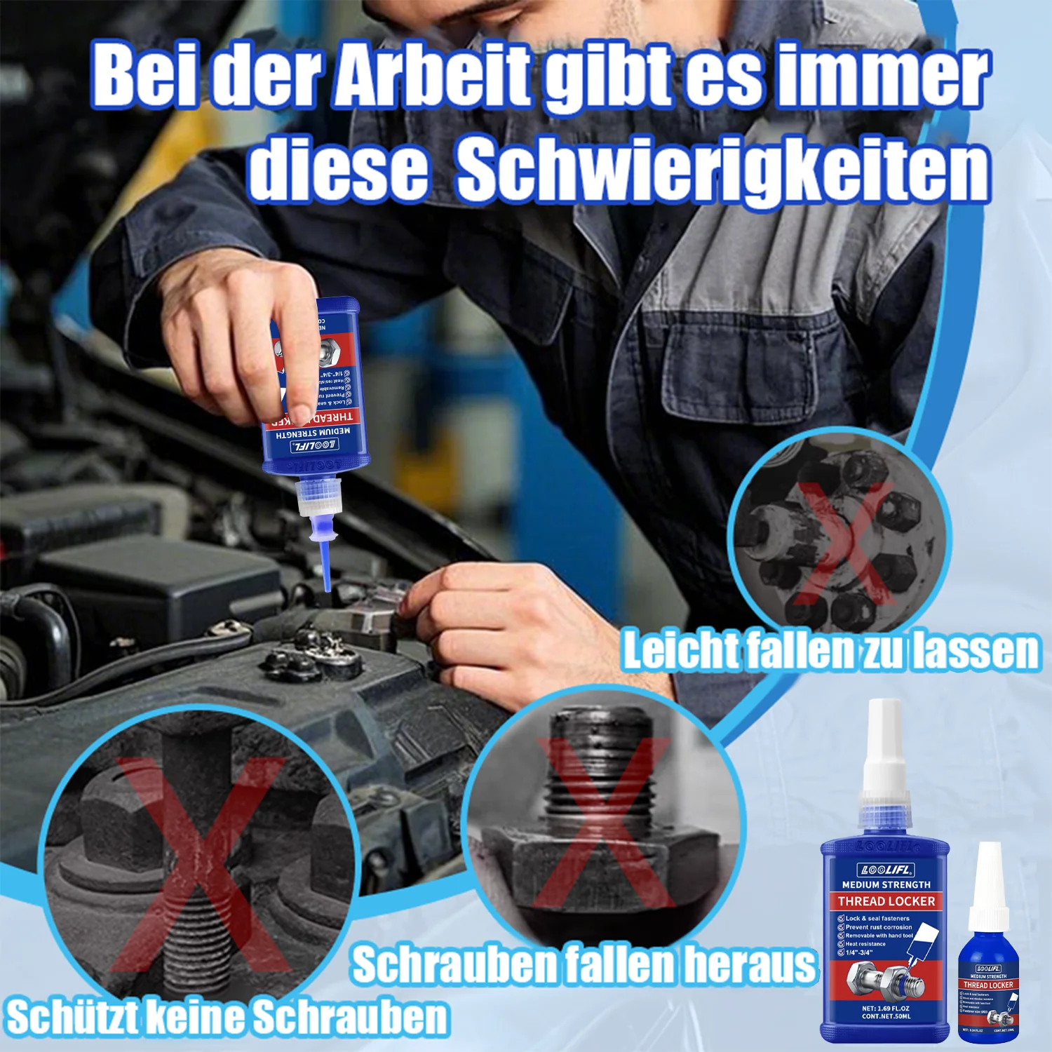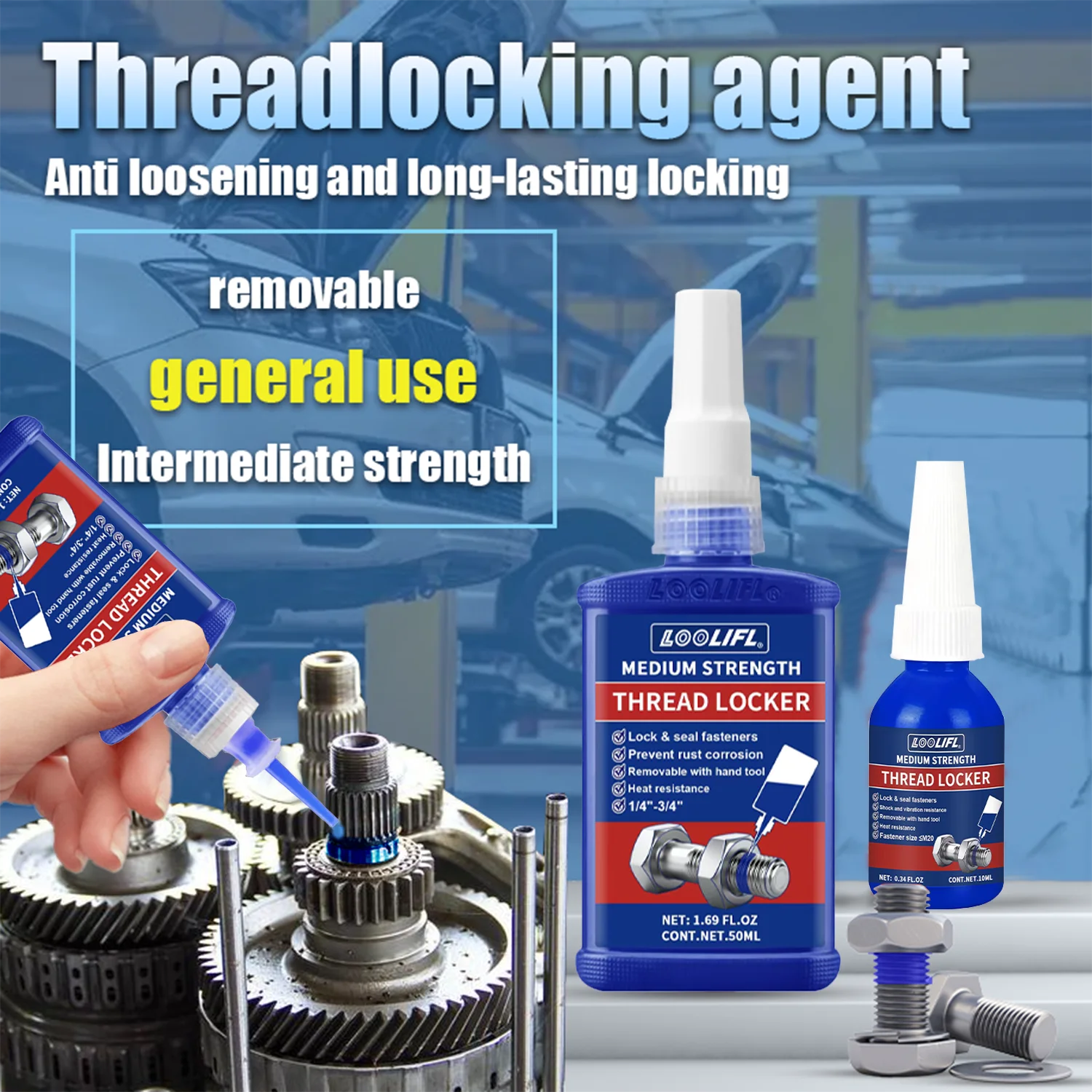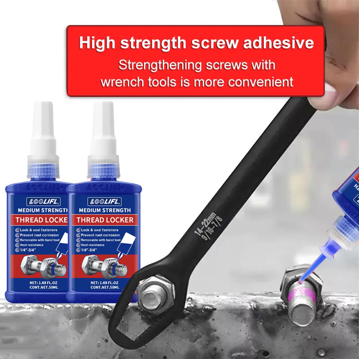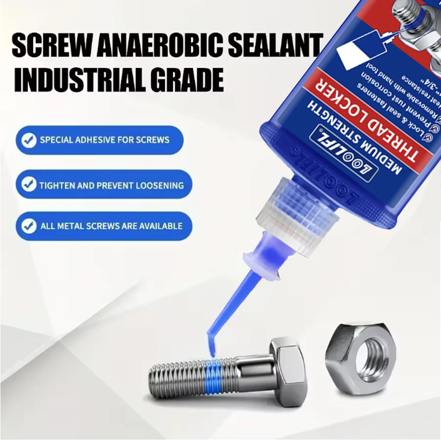LOOLIFL, 243 medium strength, thread locking agent, anaerobic adhesive, waterproof, rust proof, oil resistant, detachable