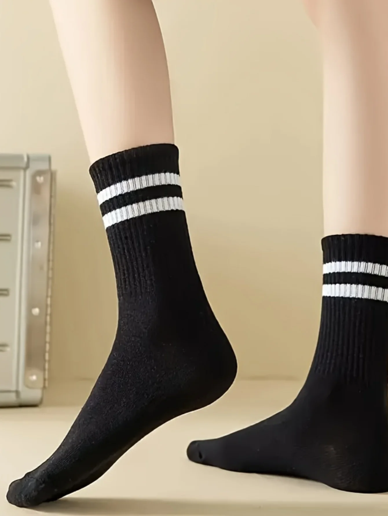 【Hot Recommendation】10/20 Pack Two-Striped Sports Mid-Calf Socks, Uni, Breathable and Non-Stuffy, a Must-Have for Students, Suitable for All Seasons, Casual Socks