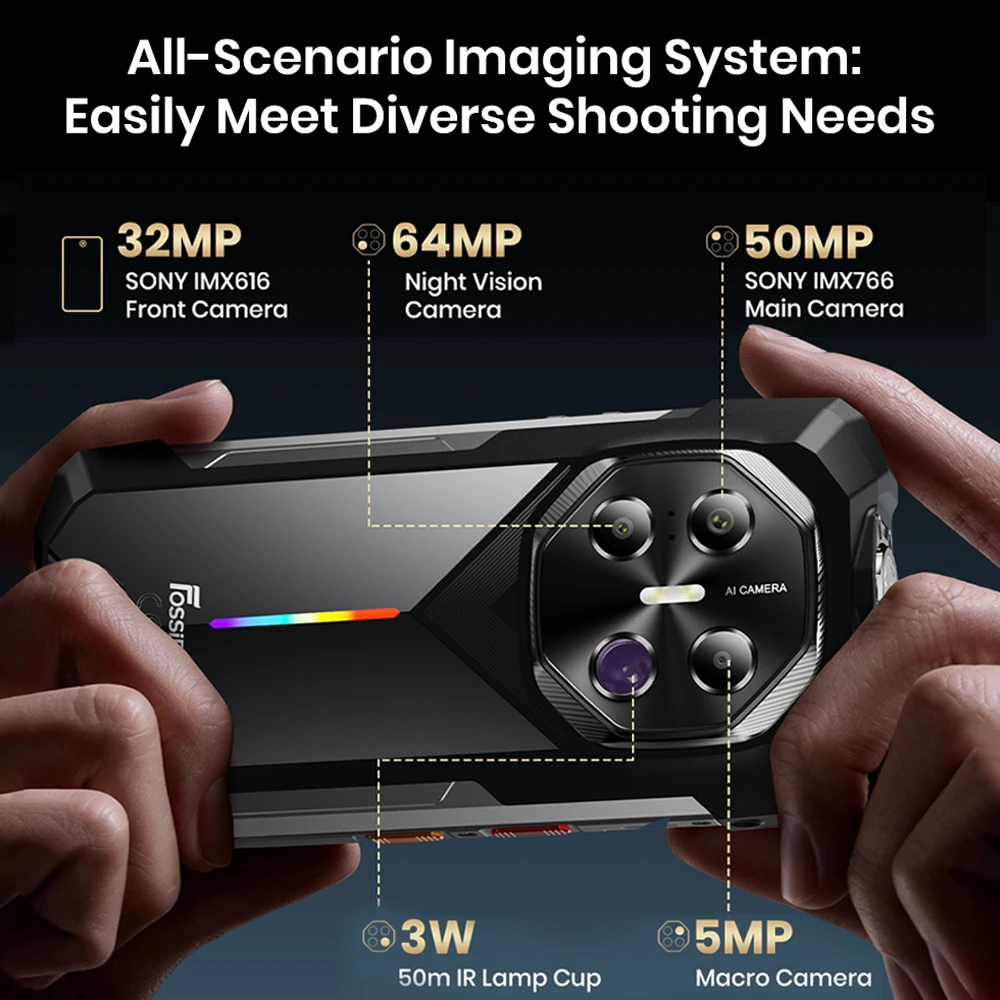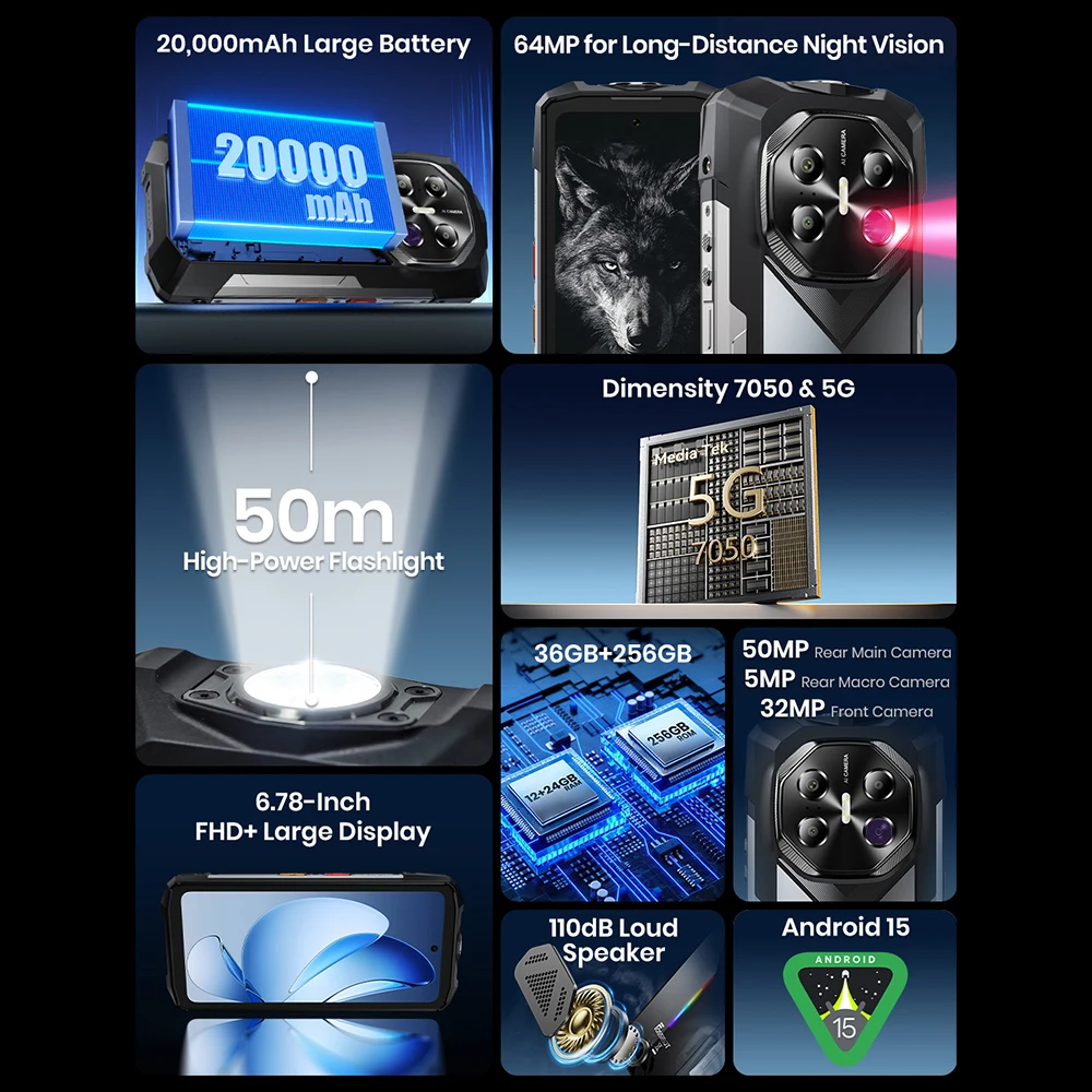 FOSSiBOT F113 Rugged Smartphone 5G Android 15 36(12+24)GB+256GB 20000mAh Battery Camping Light 64MP 120Hz Mobile Phone 33W NFC