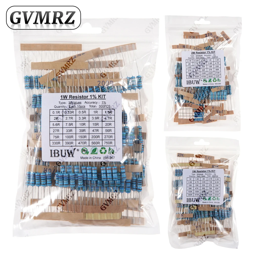 1/2W 1/4W 1W 2W 3W Resistance Set 1% Metal Film Resistor Assortment Kit 1K~820K 0.1R~750R 1K 10K 20K 30K 0.1R 10R 20R 30R