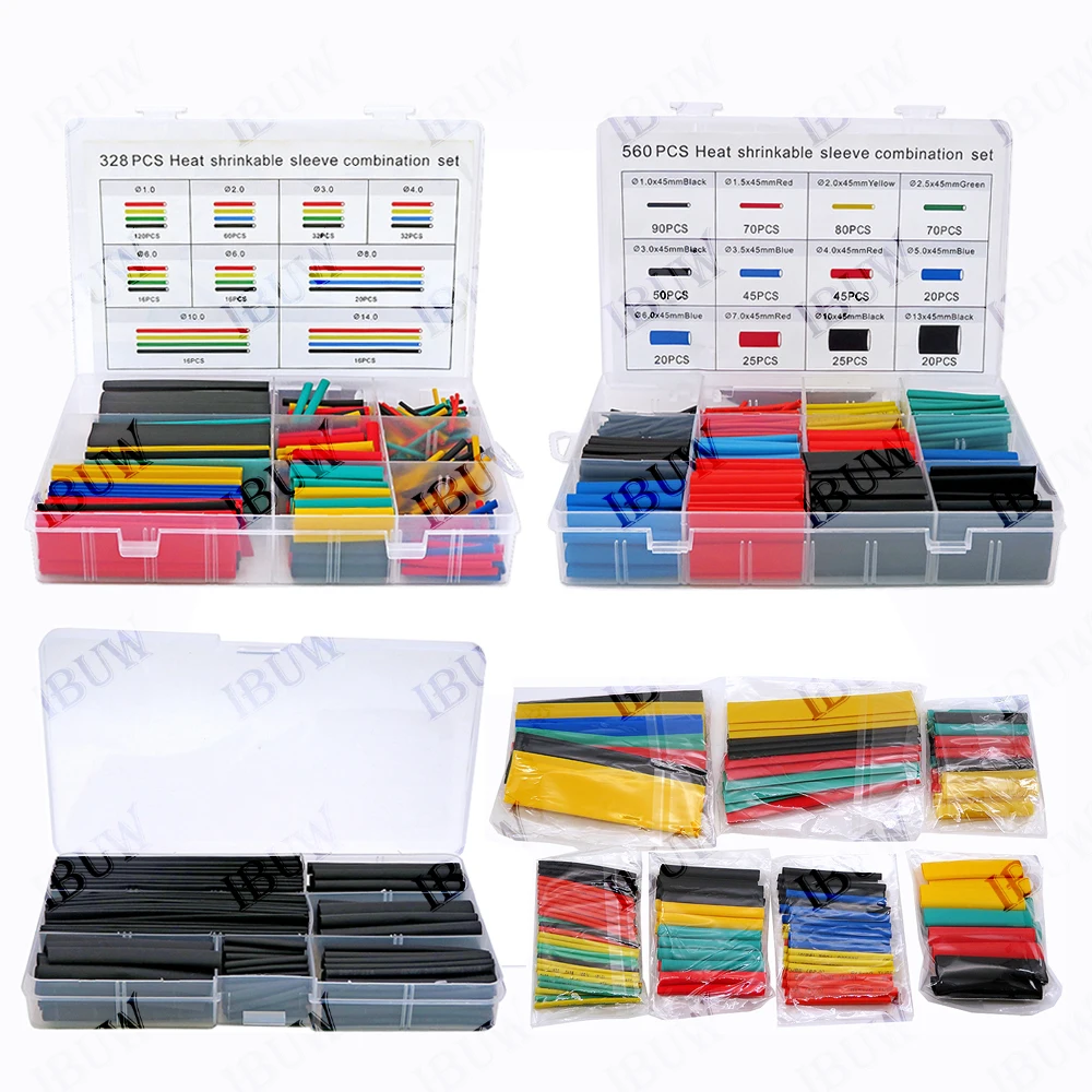 328PCS 164-560pcs Heat Shrink Tube Tubing Insulation Shrinkable Tube Assortment Electronic Polyolefin Wire Cable Sleeve Kit