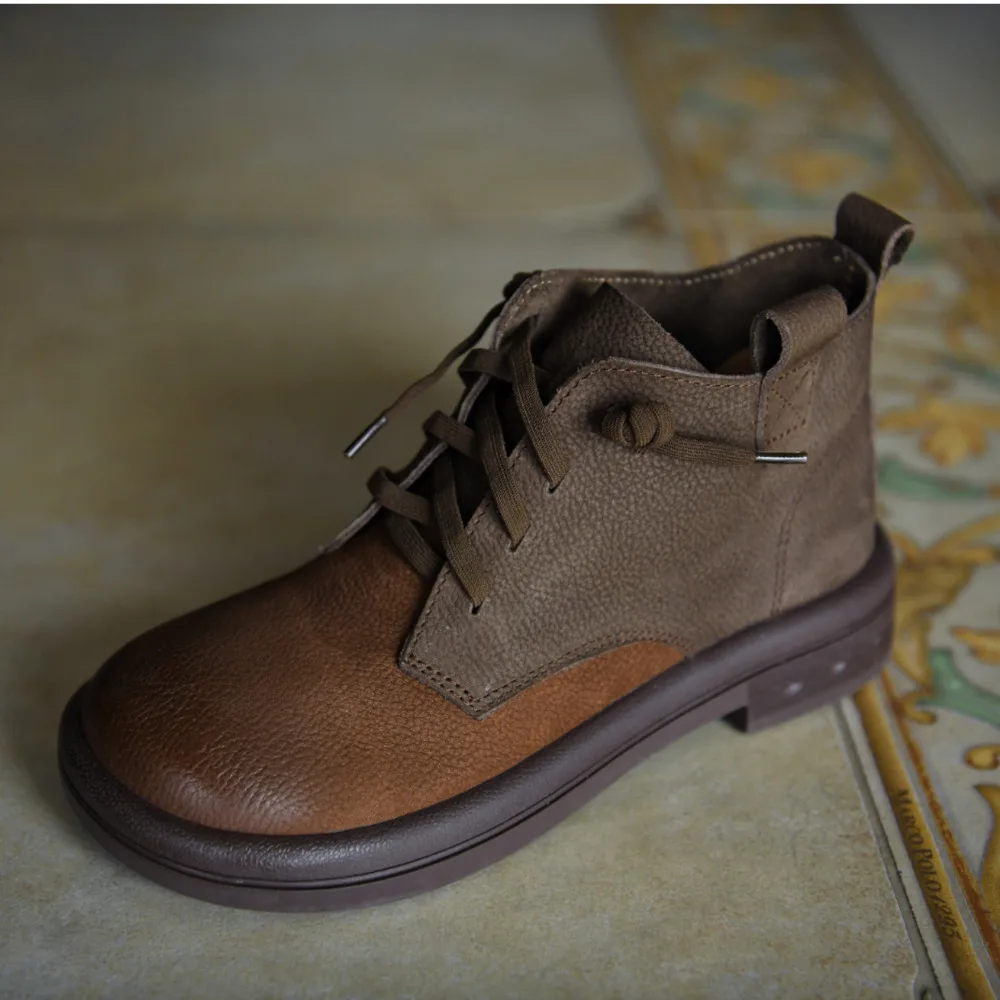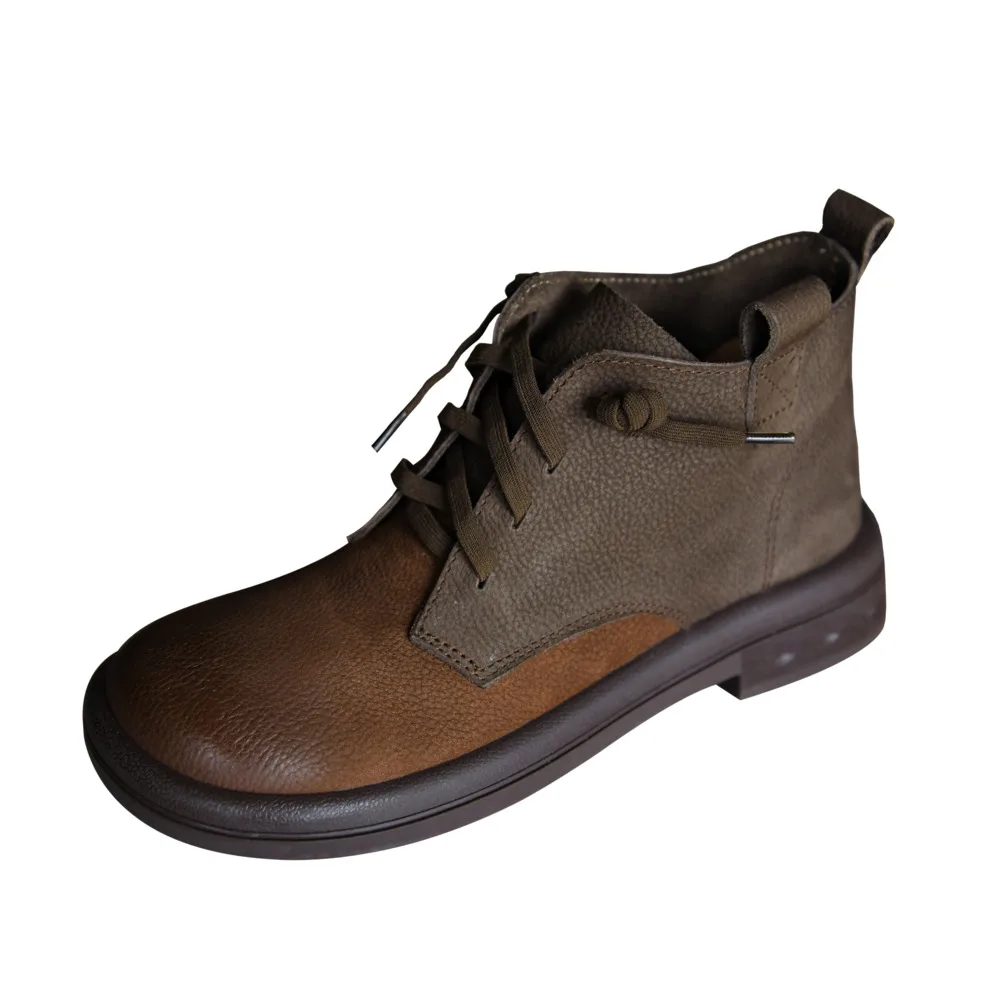 Top Cowhide Spell Color Classic Retro Boots Flat Soft Sole Women Genuine Leather Boots 2025 New Full Real Leather Trendy Boots