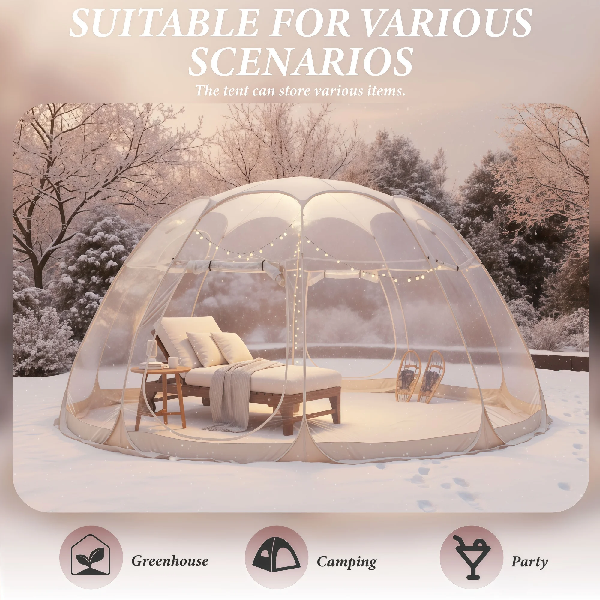 Large Quick-Set Bubble Tent Portable Outdoor Igloo Extreme Cold Resistant Winter Shelter for Camping And Backyard Use
