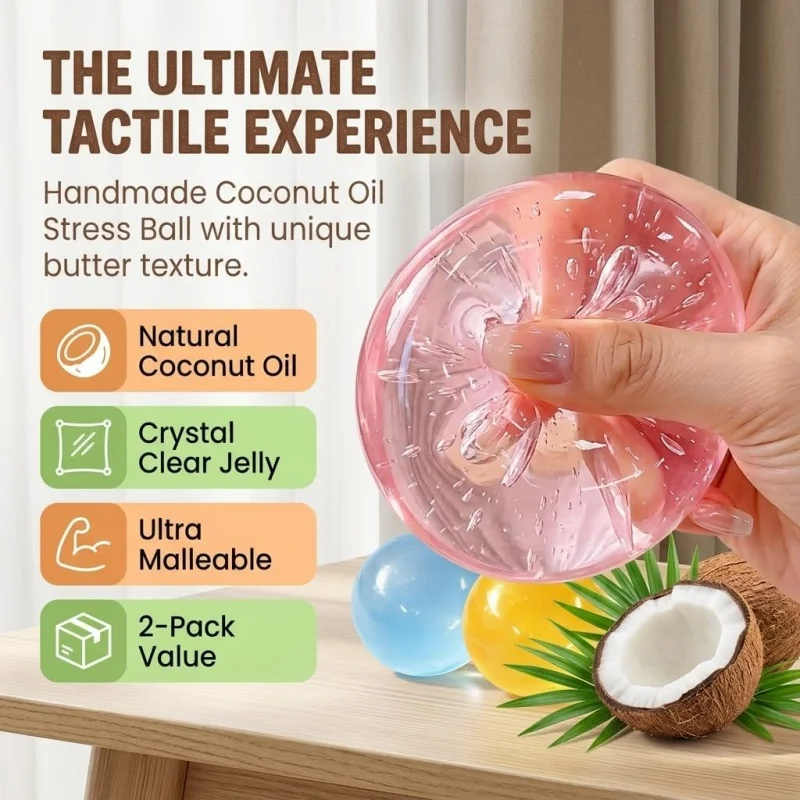 Handmade Coconut Oil Squishy Ball Slow Rising Fidget Stress Ball Clear Jelly Sensory Ball Soft Stress Relief Toy for s