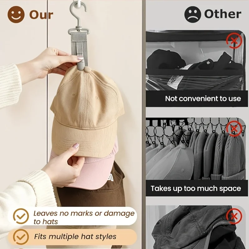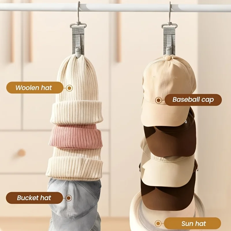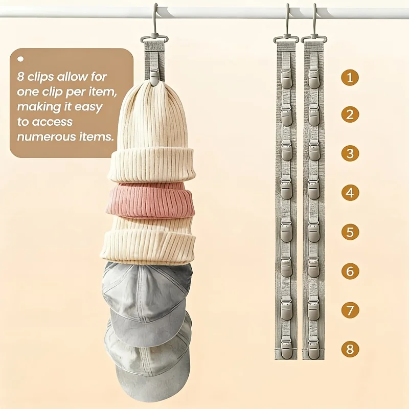 Wardrobe Hat Rack Hanging Rope Hat Storage Clips Hat Organizer Display for Baseball Caps Hat Hanger for Closet Door and Bedroom