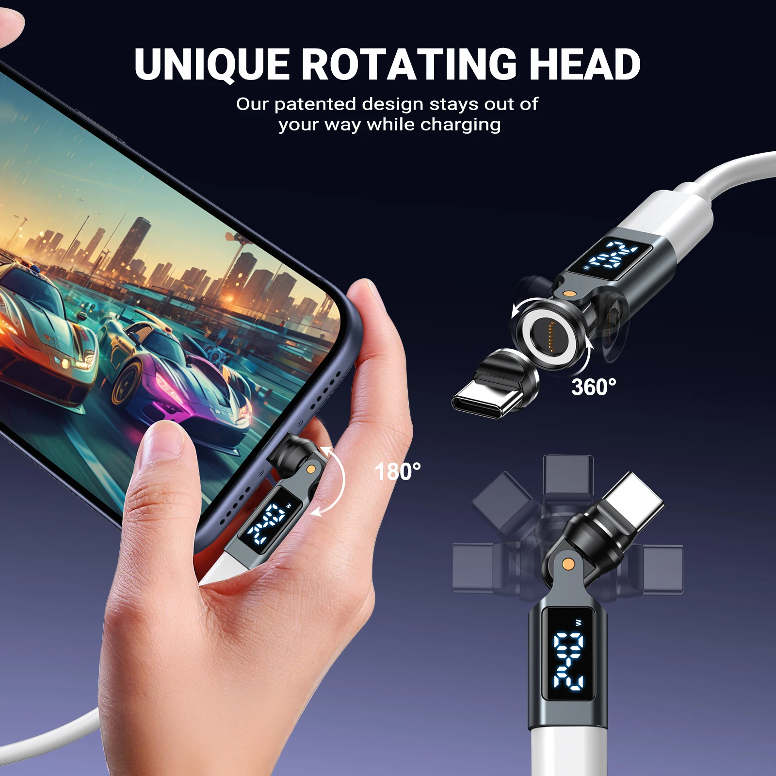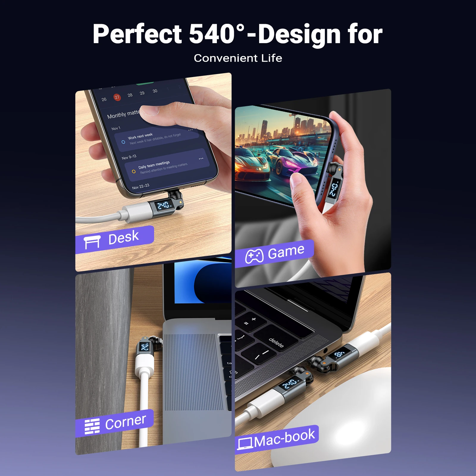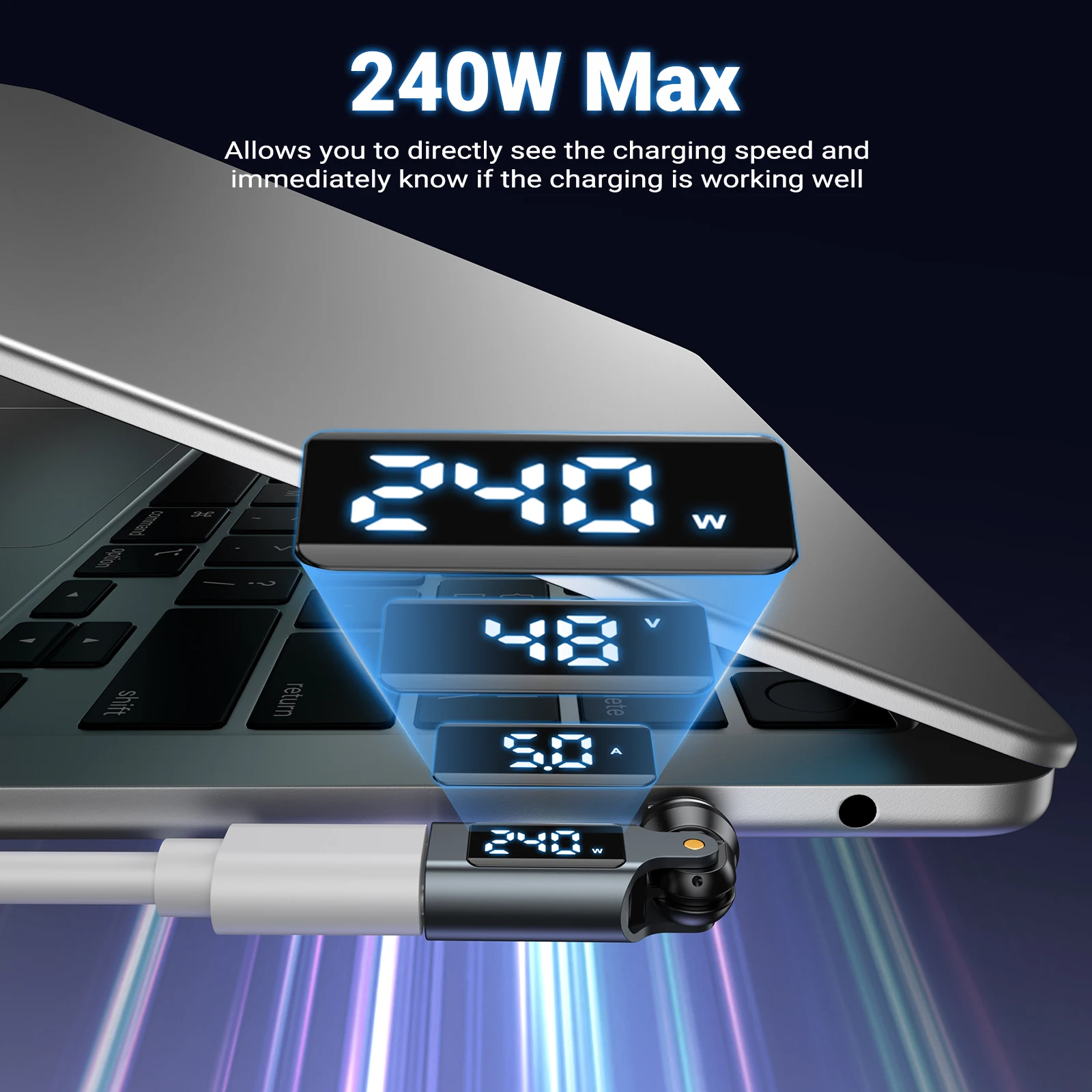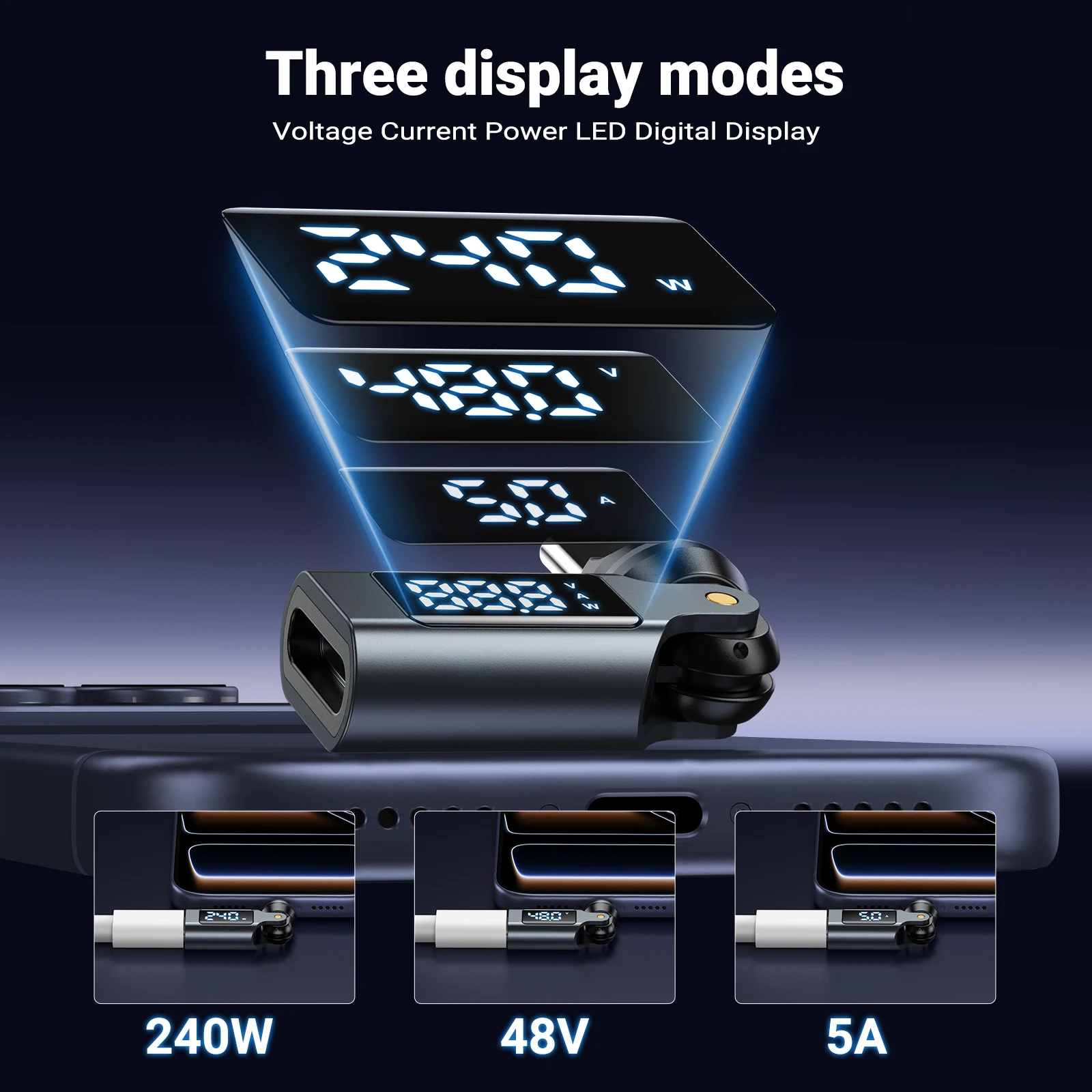 AUFU Digital Display USB C Magnetic Adapter PD240W 9Pin USB C to Type C Fast Charging USB-C Female OTG Converter for Samsung IPh