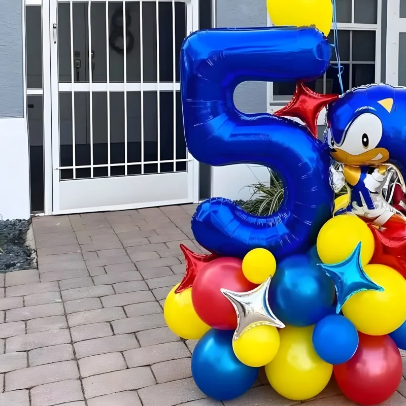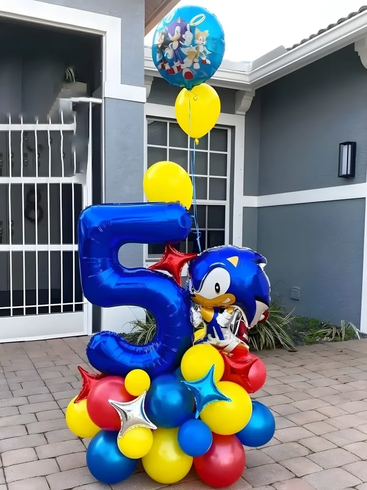 35-Piece Sonic the Hedgehog Cartoon Character Boys’ Balloon Kit – Number Combo Foil Balloons for Birthday Party, Baby Gift