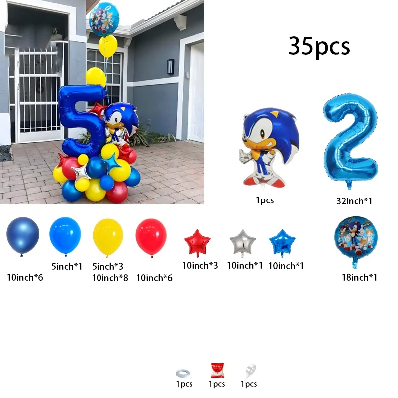 aliexpress , ali , shop , ali shop , online , prodavnica , online shop , online prodavnica , kupujem , prodajem , 35-Piece Sonic the Hedgehog Cartoon Character Boys’ Balloon Kit – Number Combo Foil Balloons for Birthday Party, Baby Gift