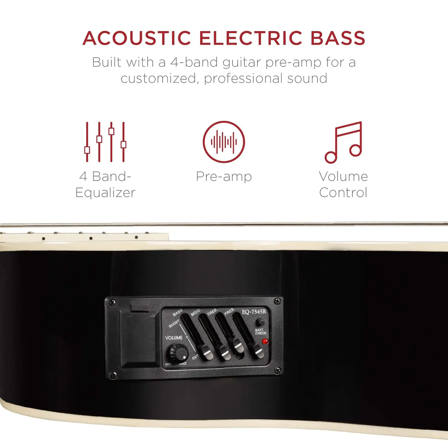 Acoustic Electric Bass Guitar, Full Size 4 String, Fretted Bass Guitar w/Padded Gig Bag - Black, Customized