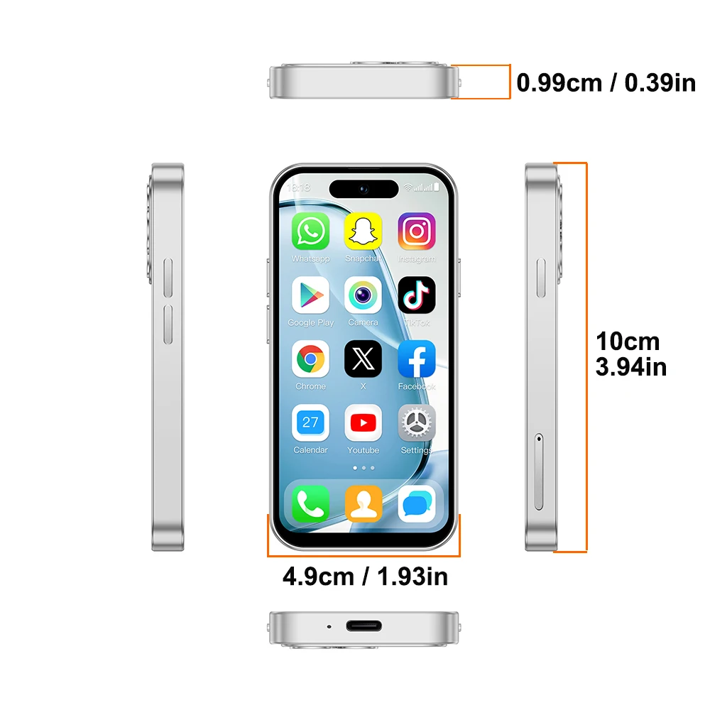 SOYES A18 Pro 4.0'' Full Screen Mini Smartphone 4G LTE 2GB RAM 16GB ROM Android 12 Dual SIM Standby 2000mAh Backup Small Phone