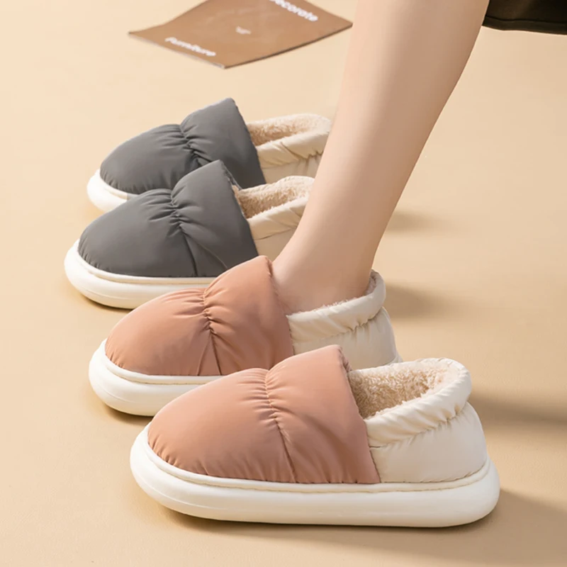 aliexpress , ali , shop , ali shop , online , prodavnica , online shop , online prodavnica , kupujem , prodajem , Ladies Heel Coverage Fleece Slippers Down-proof Fabric Shoes Non-Slip Winter House Shoes with Soft Sole for Home and Outdoor Use