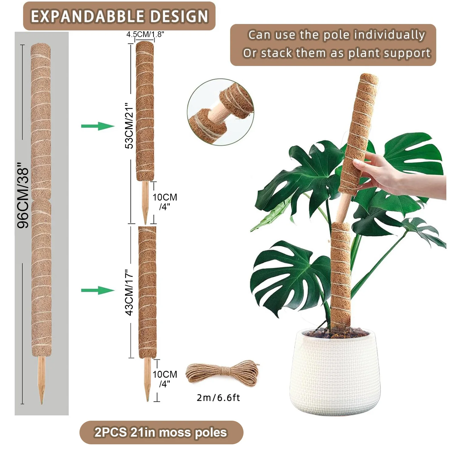 Moss Pole 38/43/53CM Monstera Plant Support Stackable Moss Poles for Plants Coir Totem Pole Tall Moss Pole for Climbing Plants