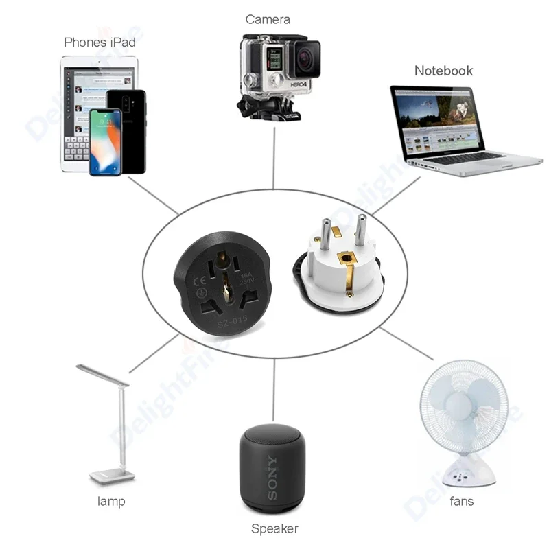 EU Plug Adapter 16A 250V EU Travel Adapter Converter 2 Round Socket High Quality Universal AU US UK CN To EU AC Wall Socket