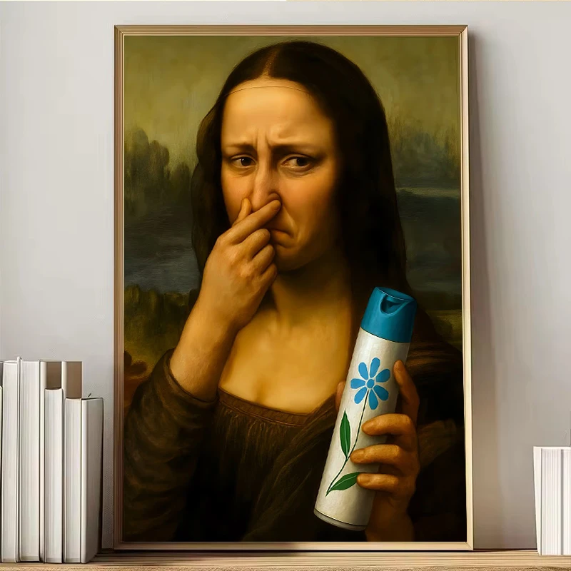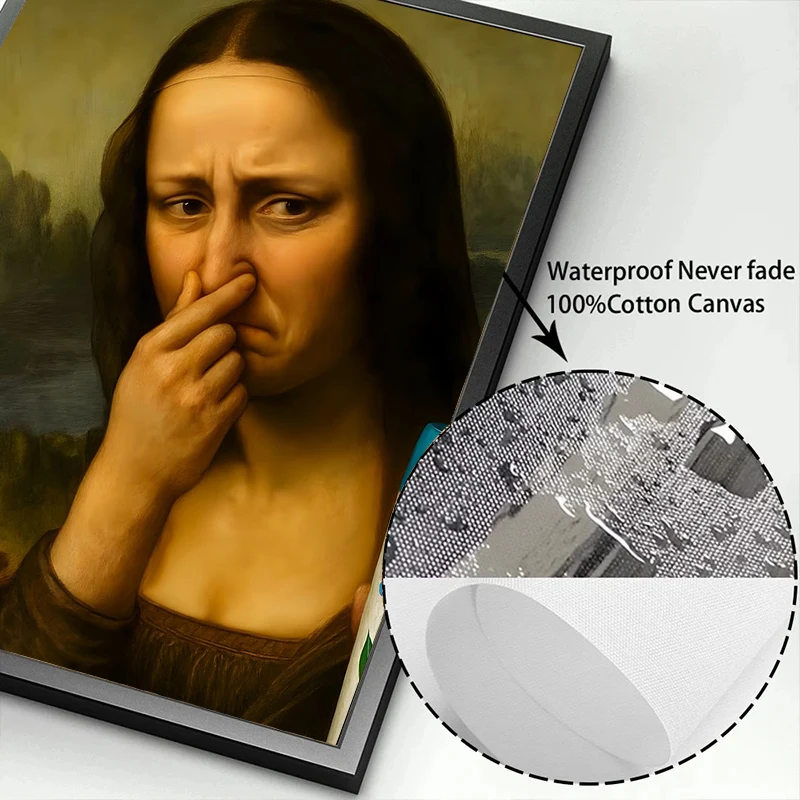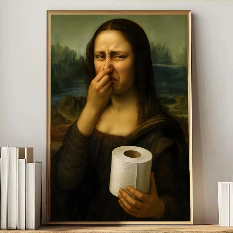 Mona Lisa Funny Toilet Canvas Print Poster Vintage Abstract Art Figure Painting Wash Room Toilet Hallway Wall Art Home Decor