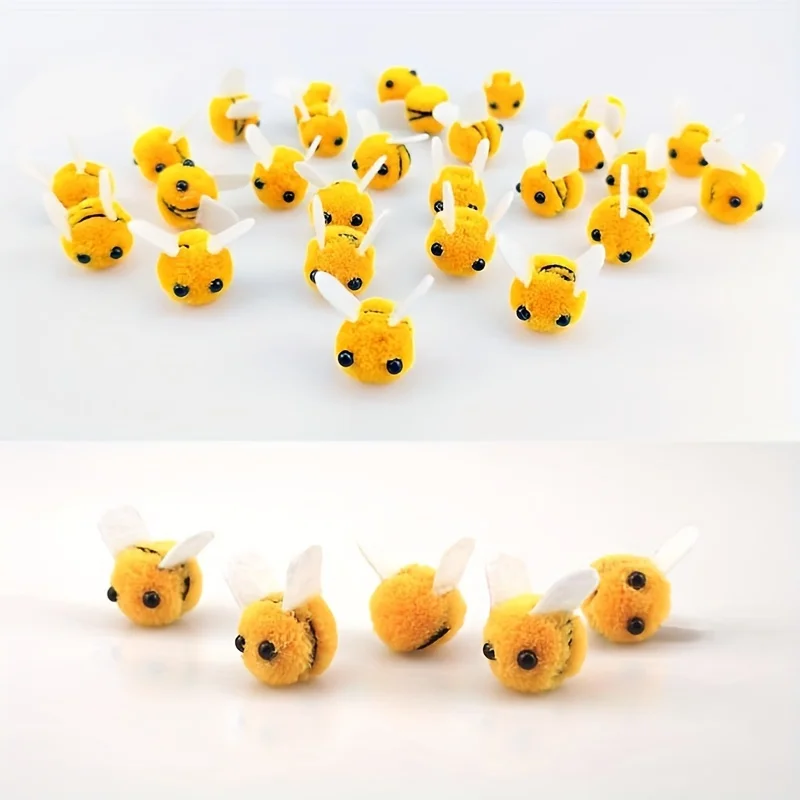 20pcs Cute Mini Bee Pom Pom Decorations for Crafts, Party Favors, Flower Arrangements & DIY Projects