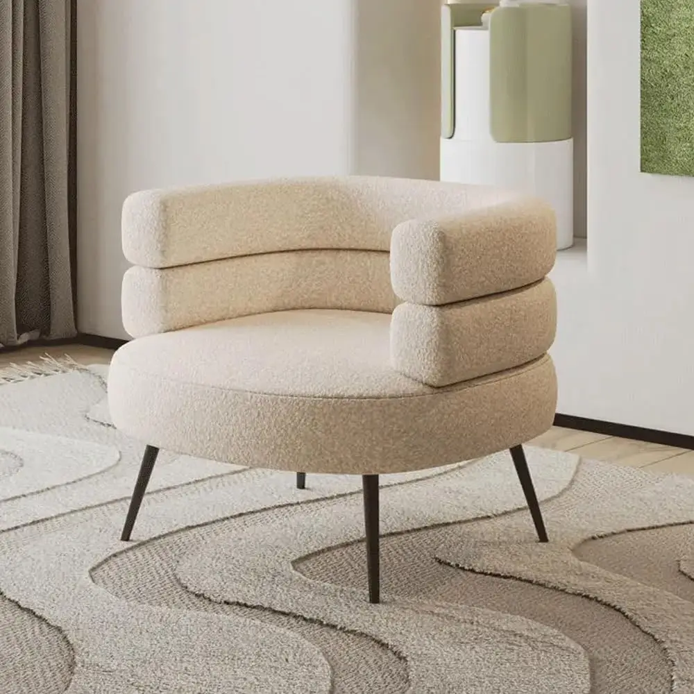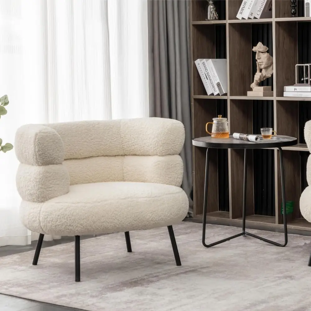 ALI shop - rezultati pretrage ... ... Mid Century Sherpa Boucle Accent Chair, Round Upholstered Barrel Arm Chair for Small Spaces, Fluffy Side Corner Sofa for Living ::: 2021 ::: :::