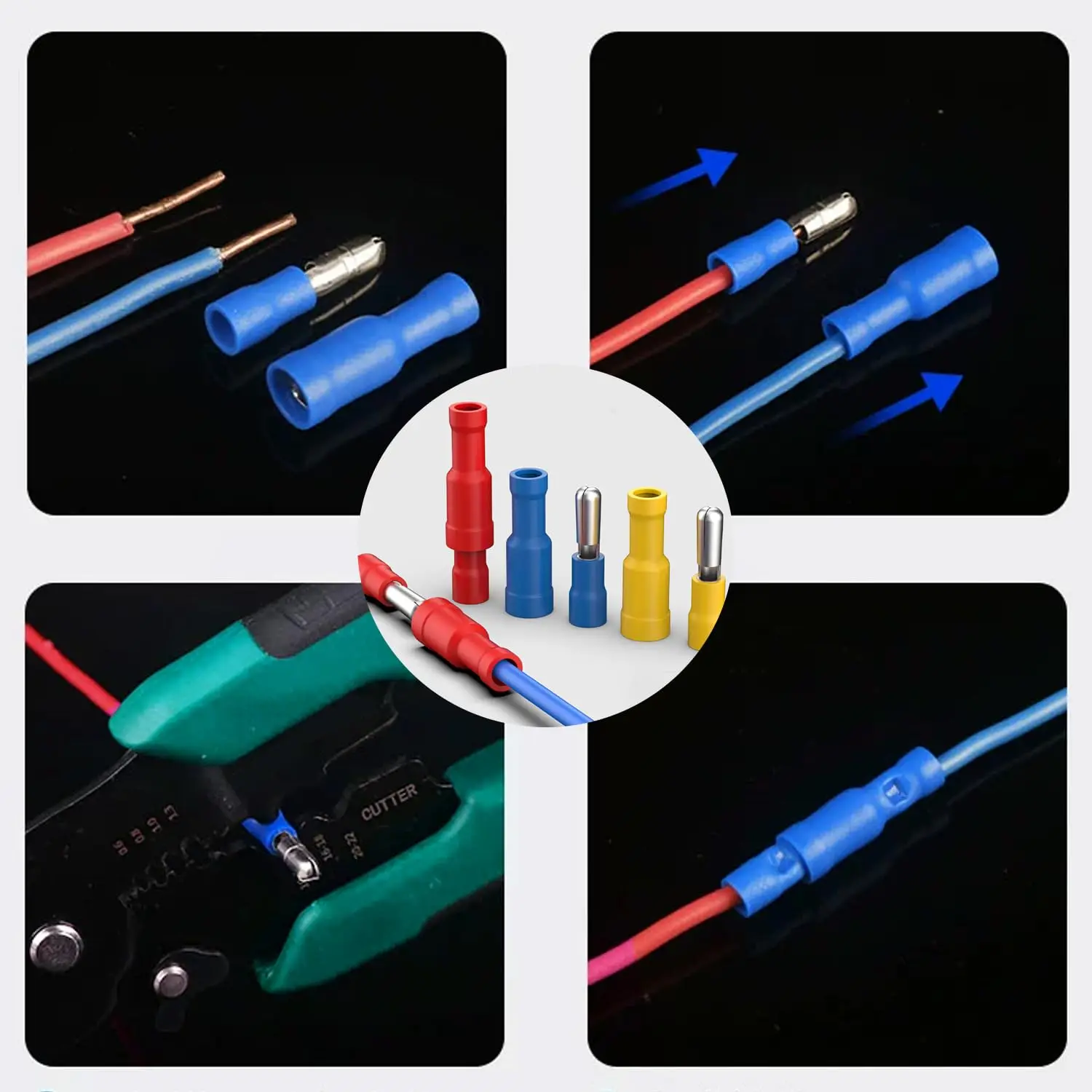100Pcs Blue Bullet Connectors 16-14AWG Female & Male Bullet Butt Connector for Automotive, Boat, Stereo, Industrial Equipment