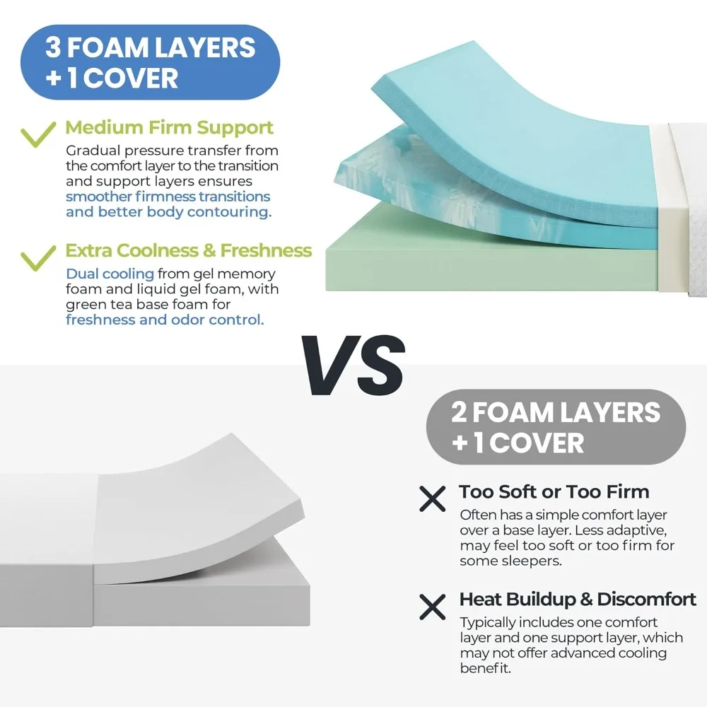 8 Inch Mattress 3 Foam Layer Cooling Gel Memory Foam Mattresses, Green Tea for Fresher Sleep, Medium, Customized