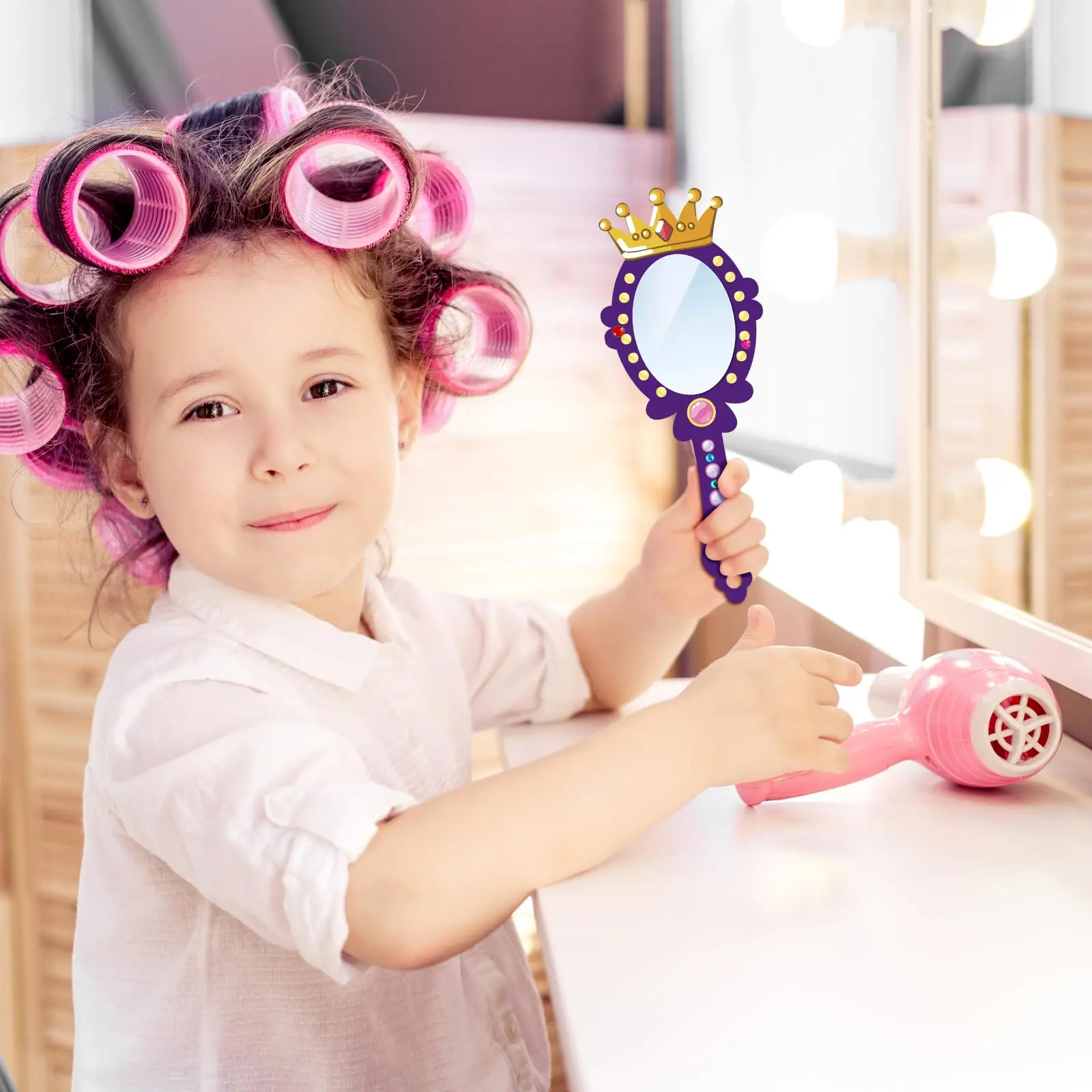 12pcs Wooden Mirror Craft for Kids Decorate You Own Princess Mirrors DIY Paint Wooden Hand Mirror Birthday Gift Party Supplies