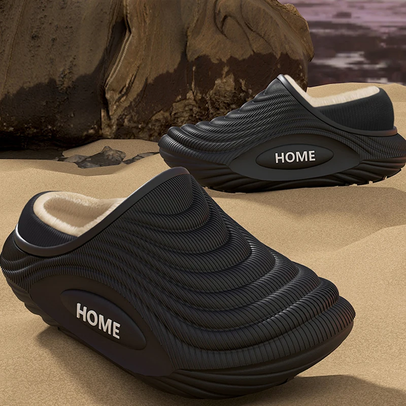 Casual Men‘s Warm Plush EVA Slippers Winter Platform Waterproof Indoor outdoor Shoes Woman Non Slip Furry Home Slippers