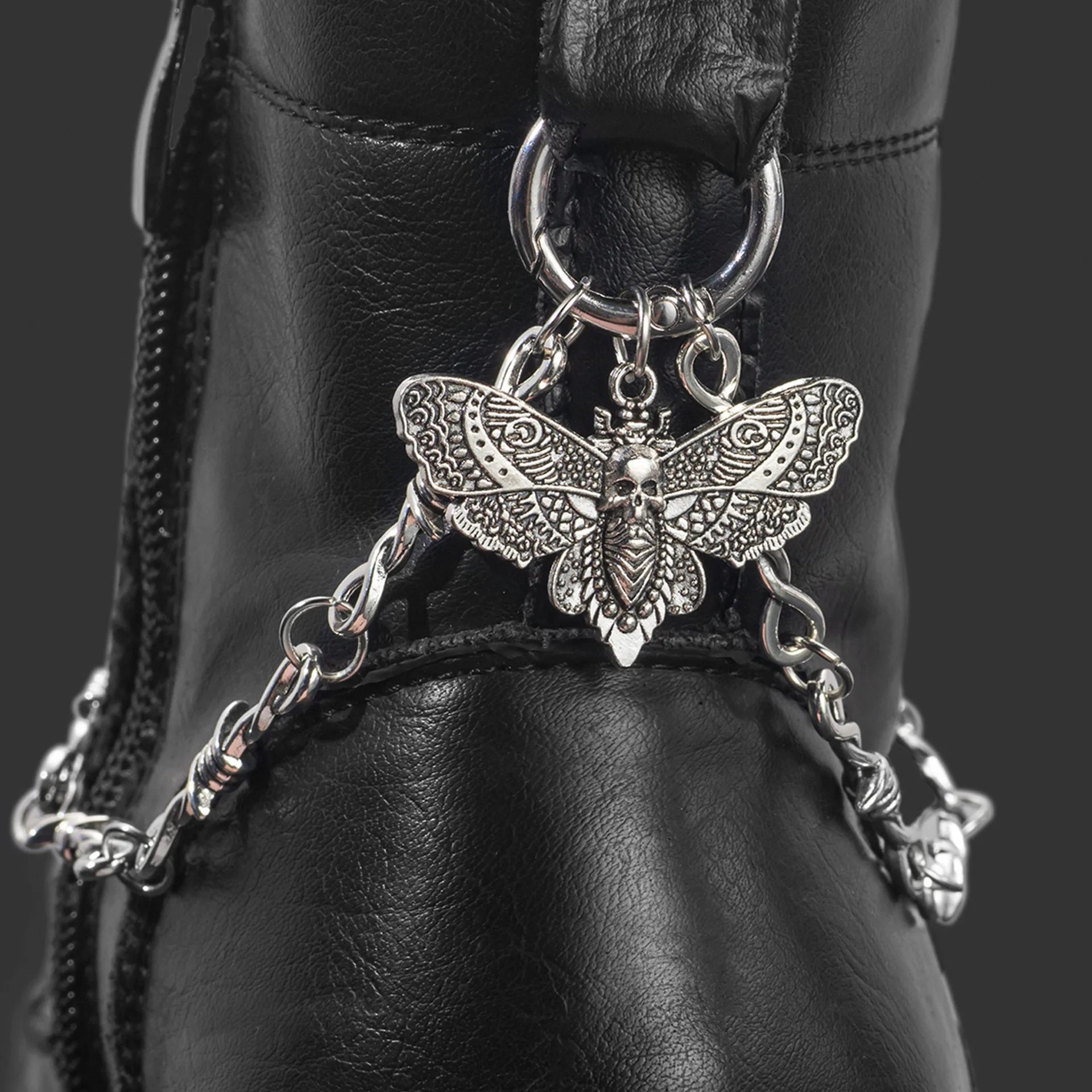 1pc Trendy Metal Shoe Chain - Gothic Skull Moth Pendant Classic Combat Boot Accessories Punk Charm Street Style Shoe Jewelry