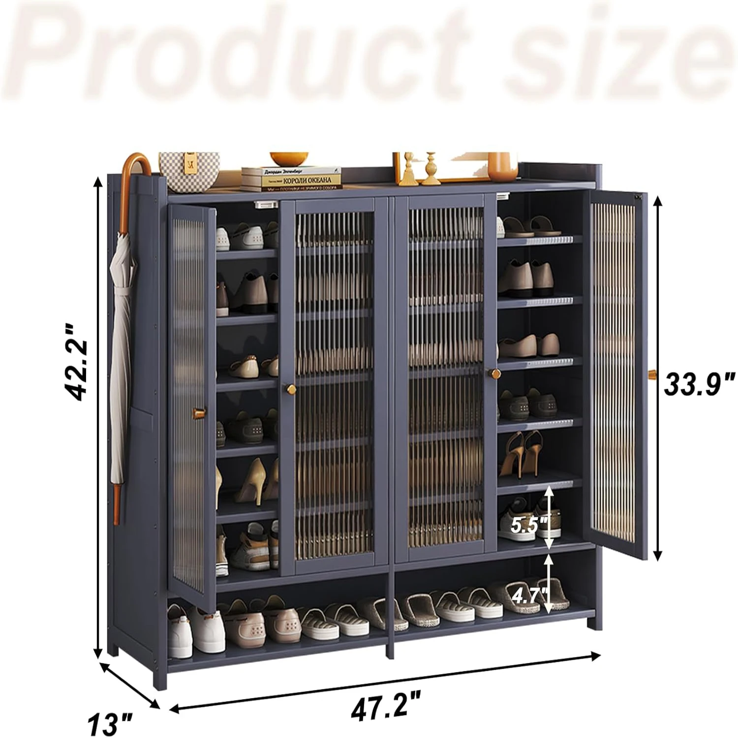 Bamboo Shoe Cabinet with Acrylic Door, Shoe Rack for Closet, Entryway Shoe Storage Cabinet for 36-40 Pairs, Shoes Rack Organizer