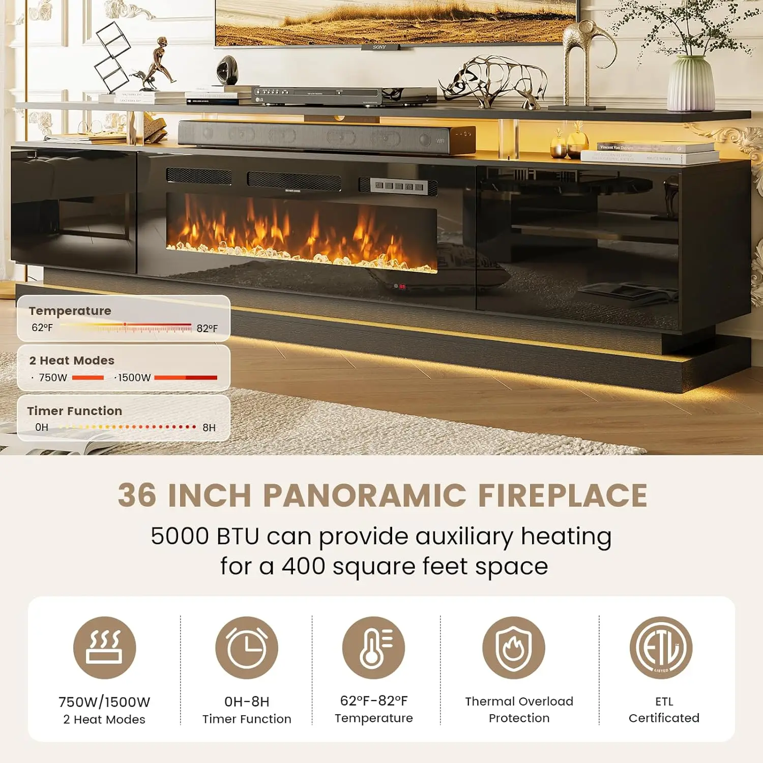 ALI shop - rezultati pretrage ... ... 70' Modern Fireplace TV Stand, Black Media Console with Storage for TVs Up to 80', Living Room Entertainment Center ::: 2021 ::: :::