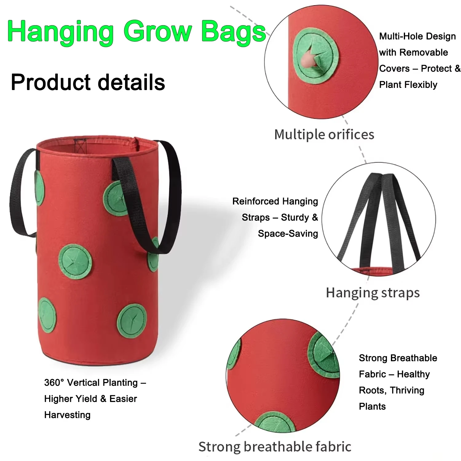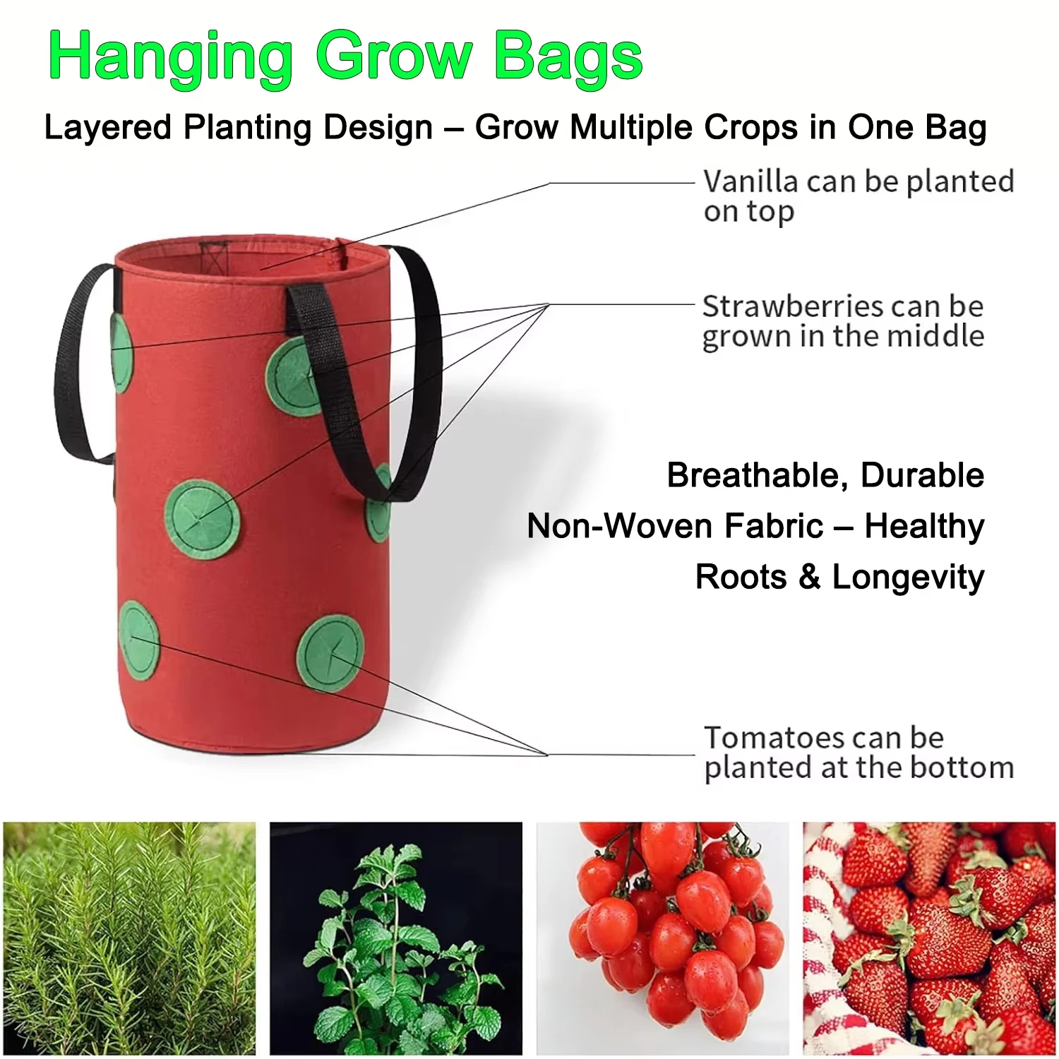 Hanging Grow Bags for Strawberries Tomatoes Hanging Planting Grow Bag Vertical Garden Strawberry Planter Pot Aeroponic Tower