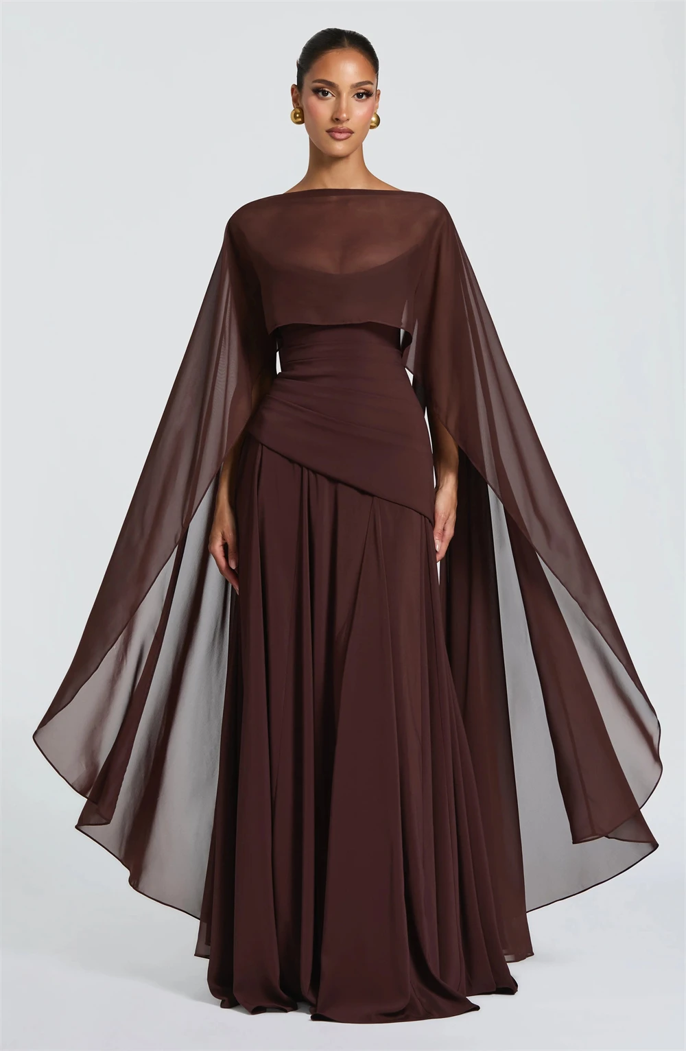 Contessa Customized Brown Strapless Elegant Evening Dress chiffon Cape Draping robes de soirée Formal Event Dress Floor Length