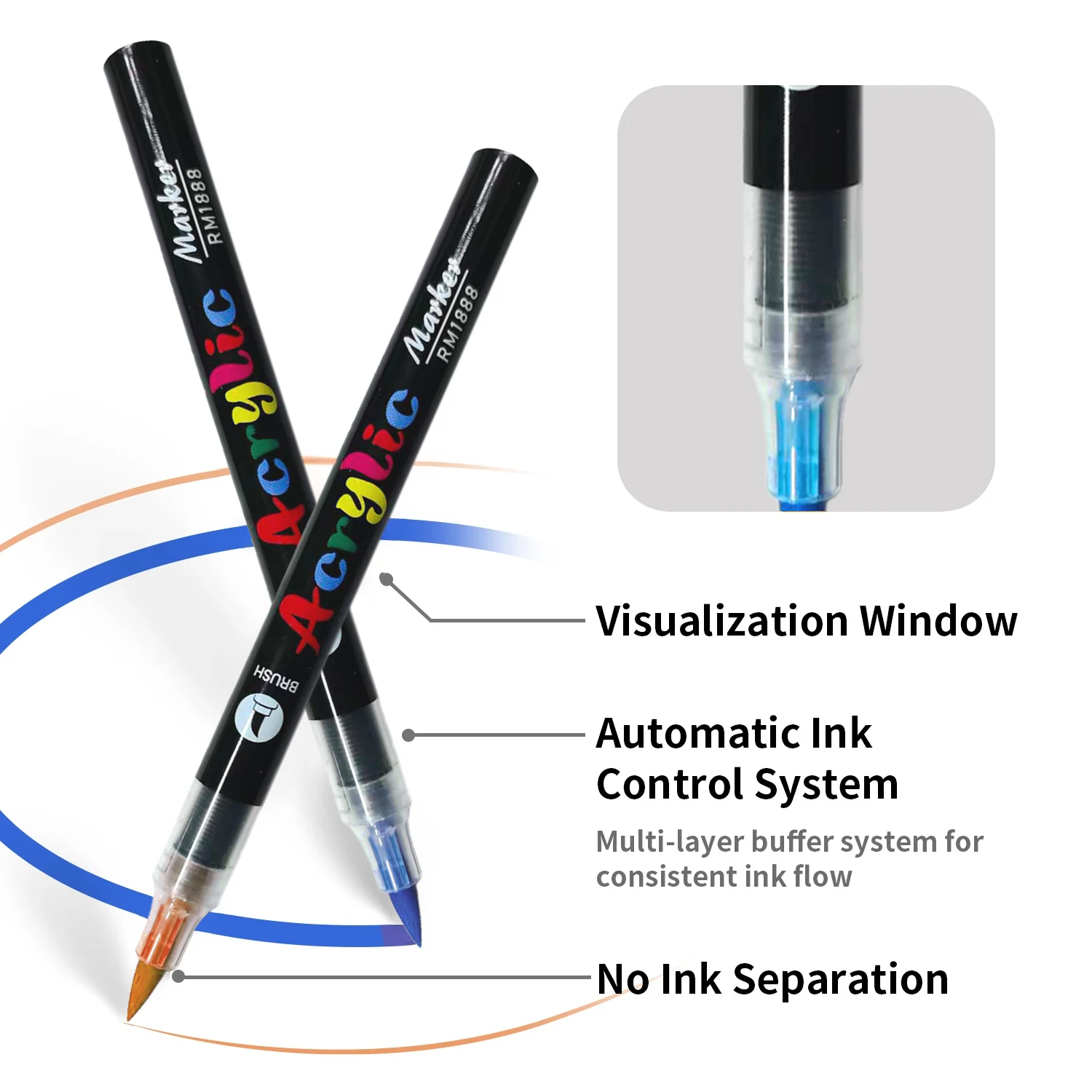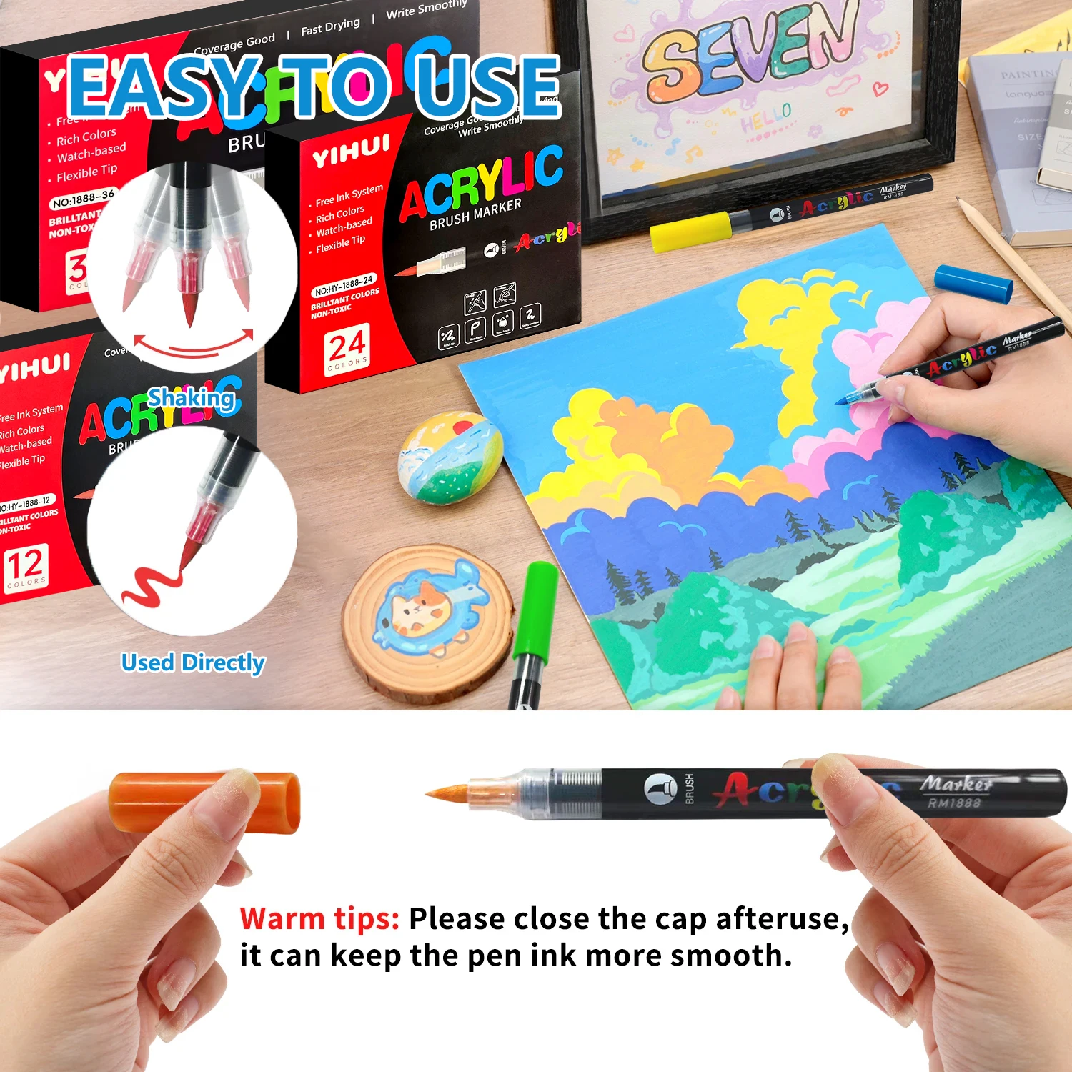 12/24/36/48/60 Colors Acrylic Paint Pens Markers Brush Tip Paint Markers For Rock Painting Wood Stone Glass Gift DIY Crafts
