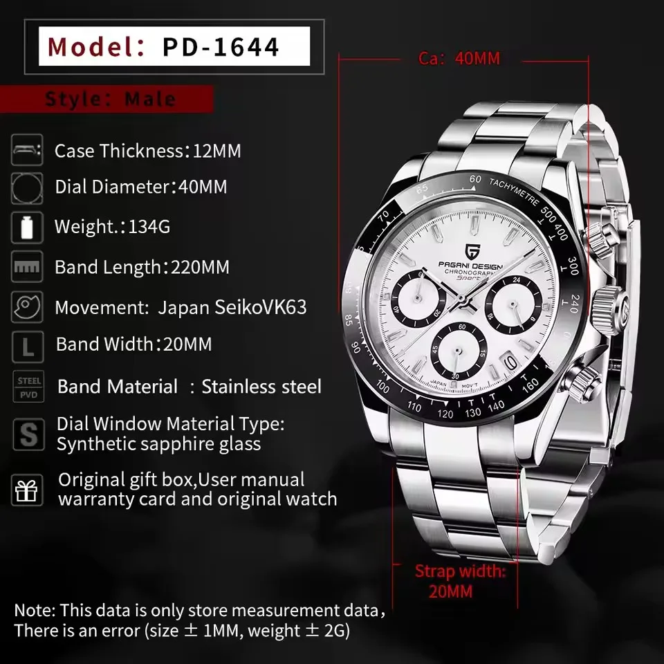 PAGANI DESIGN 2026 New Men Watches Luxury Quartz Watch For Men 100M Waterproof Sports Chronograph Wristwatch for Men gift