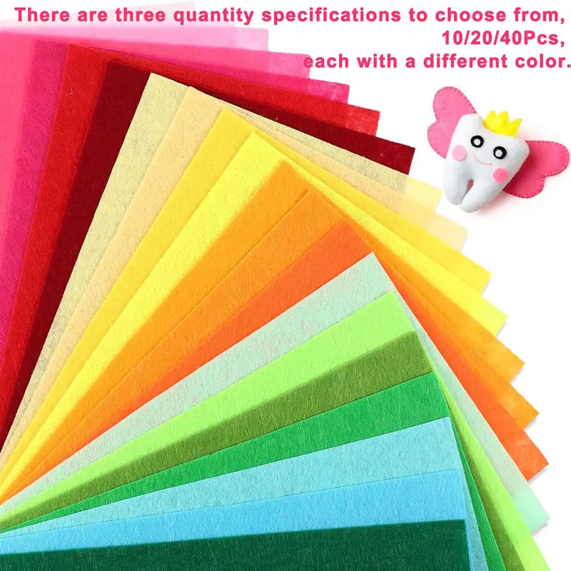 10-40Pcs Assorted Color Felt Fabric Sheets 1mm Thick Nonwoven Felt Fabric Patchwork Sewing Squares Felts Cloth Craft Packs./\]-