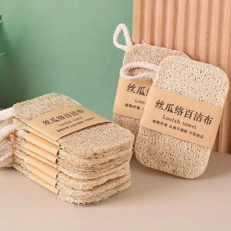 Natural Loofah Sponge Dish Scrubber Vegetable Fiber Reusable Eco Friendly Oil Stain Remover With Hanging Rope Kitchen Cleaning