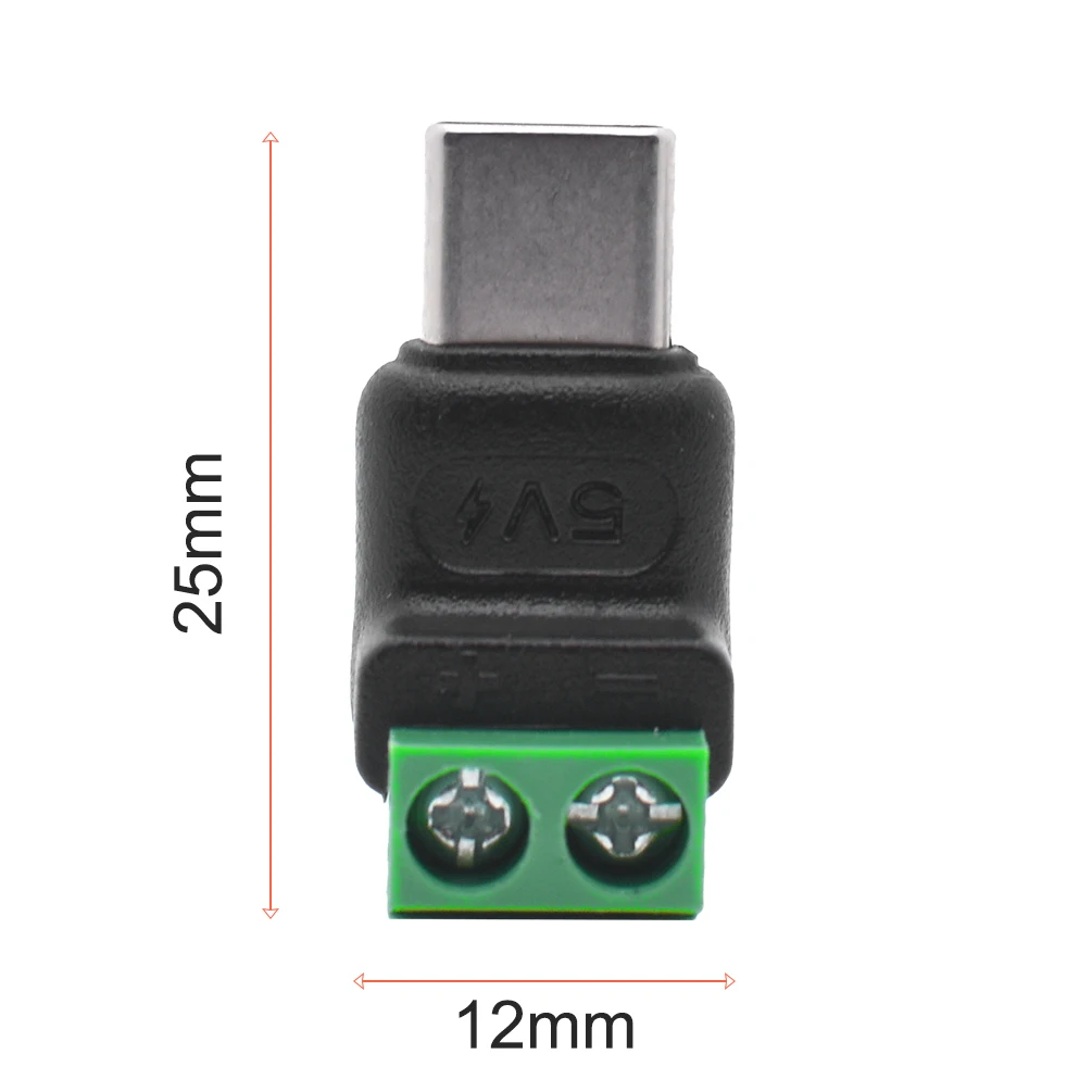 5PCS Type C to 2 Pin Adapter - No Solder Quick Connect Green Terminal for Charging Cable (Phones, Power Bank) DIY Electronics