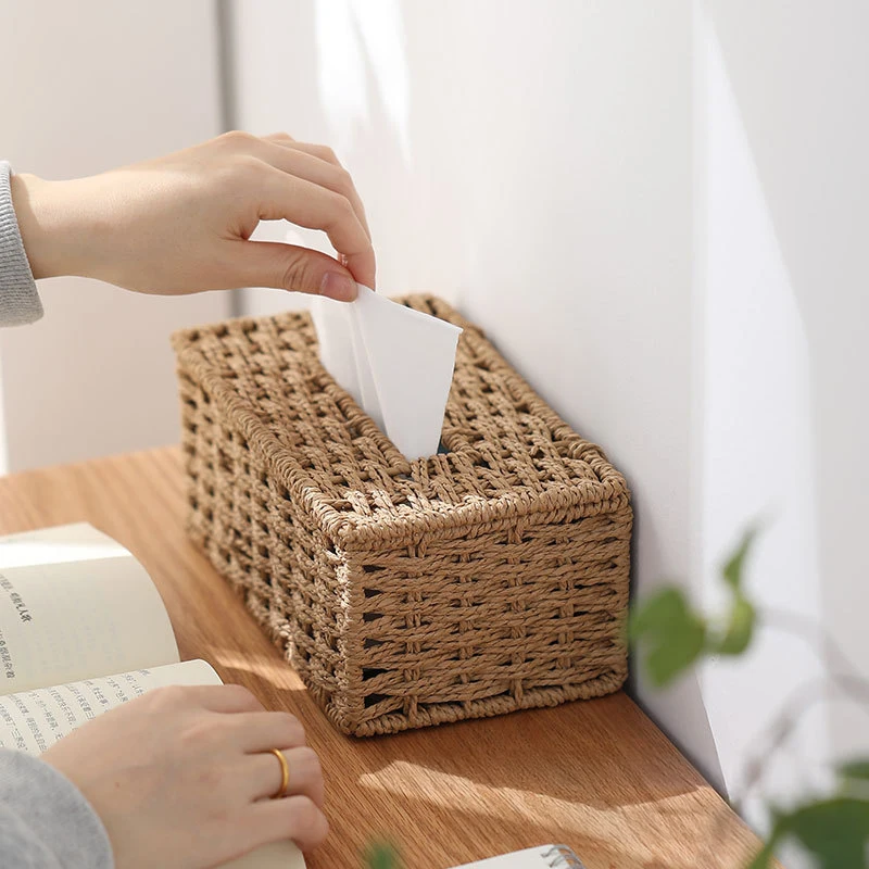 Tissue Box Handmade Woven Tissue Box Vintage Napkin Holder High Appearance Tissue Paper Holder Living Room Table Decoration