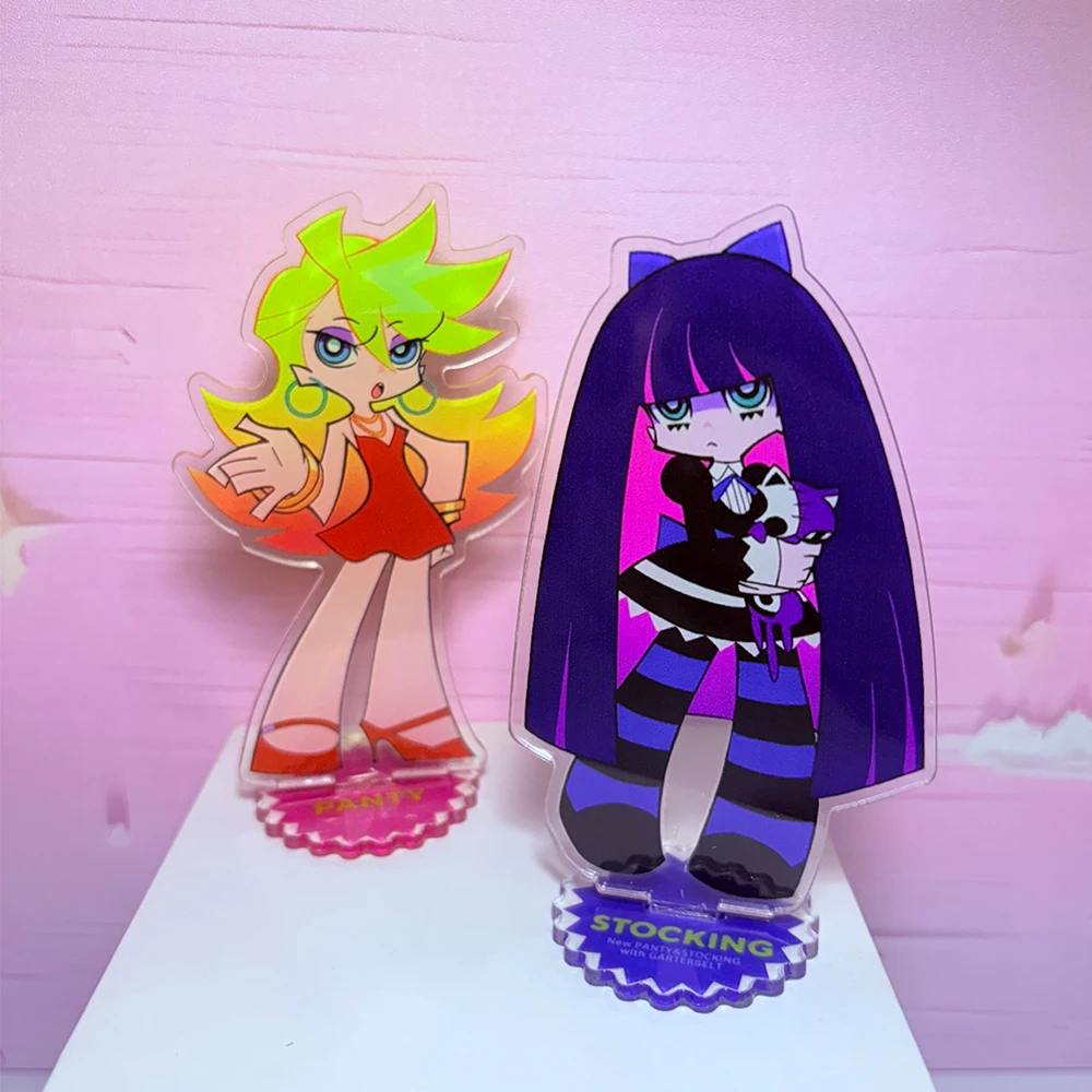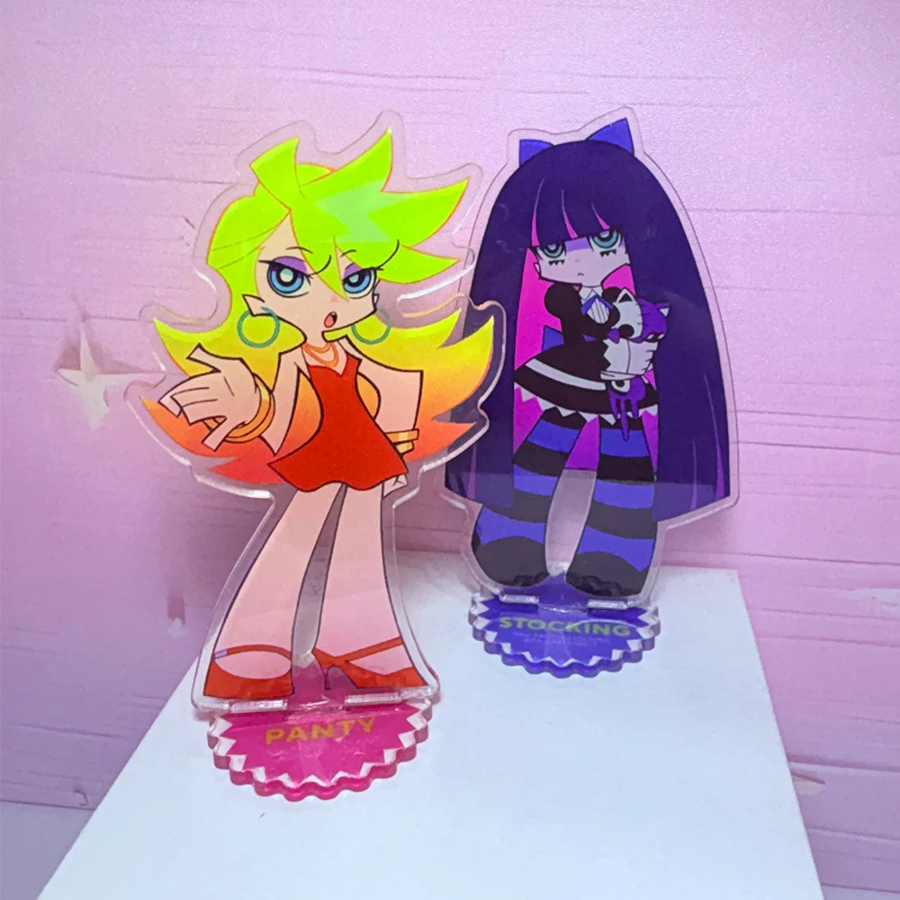 10cm Anime Panty & Stocking with Garterbelt Figure Acrylic Stand Ornament Cute Desktop Model Decoration Cosplay Props Fans Gift