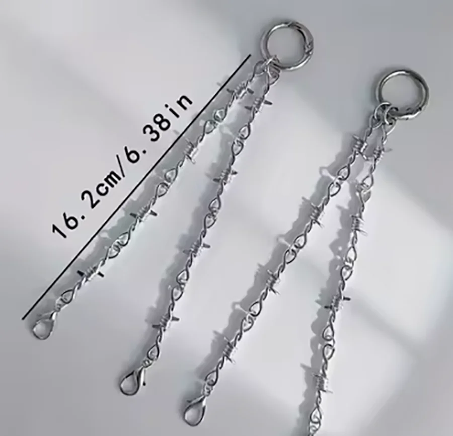 1pair/2pcs Gothic Punk Style Detachable Double Thorn Shoe Decor Chain Easy-Release Buckle Mechanism Ideal DIY Fashion Accessory