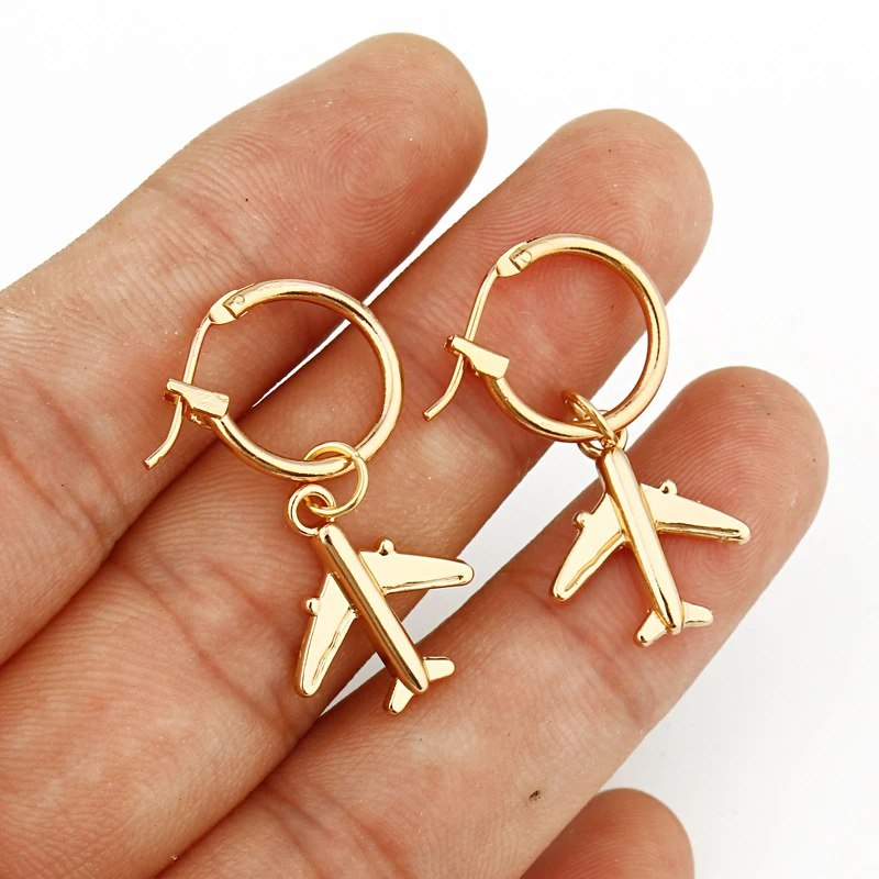 ALI shop - rezultati pretrage ... ... PESENAR Fashionable gold small airplane pendant earrings with simple and personalized solid color earrings and ear buckles ::: 2021 ::: :::