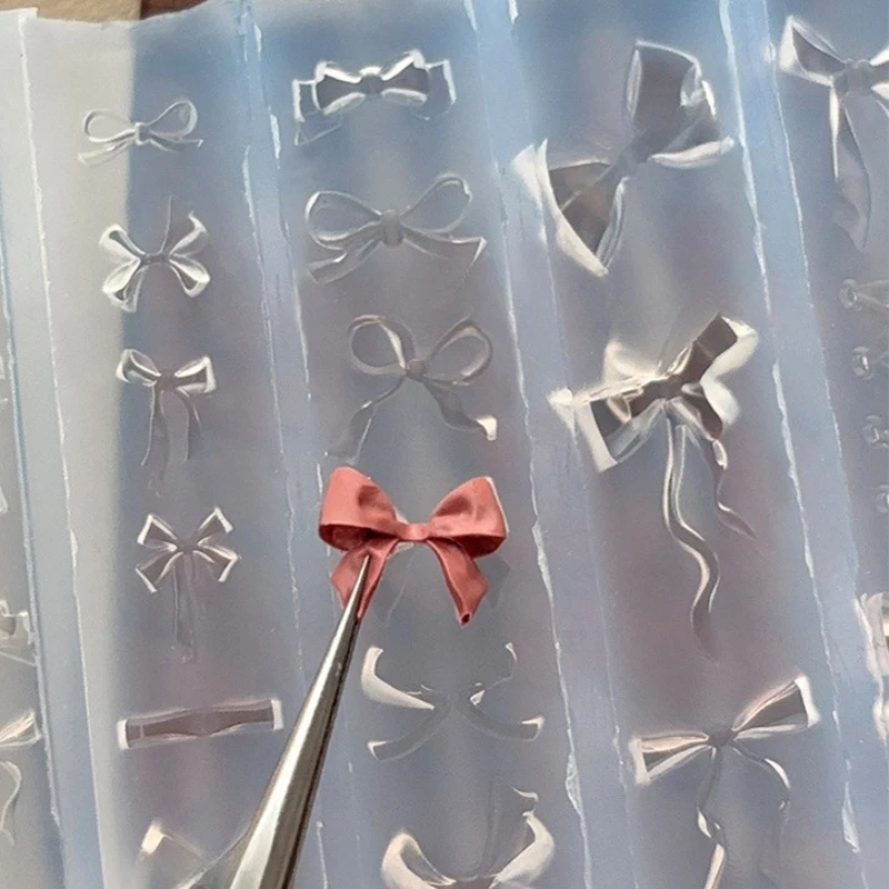 【Peace】3D Ribbon Bowknot Shaped Mold Stamping Stencils UV Gel Polish Art Mould Silicone Carving Mold DIY Design Nail Charm Decor