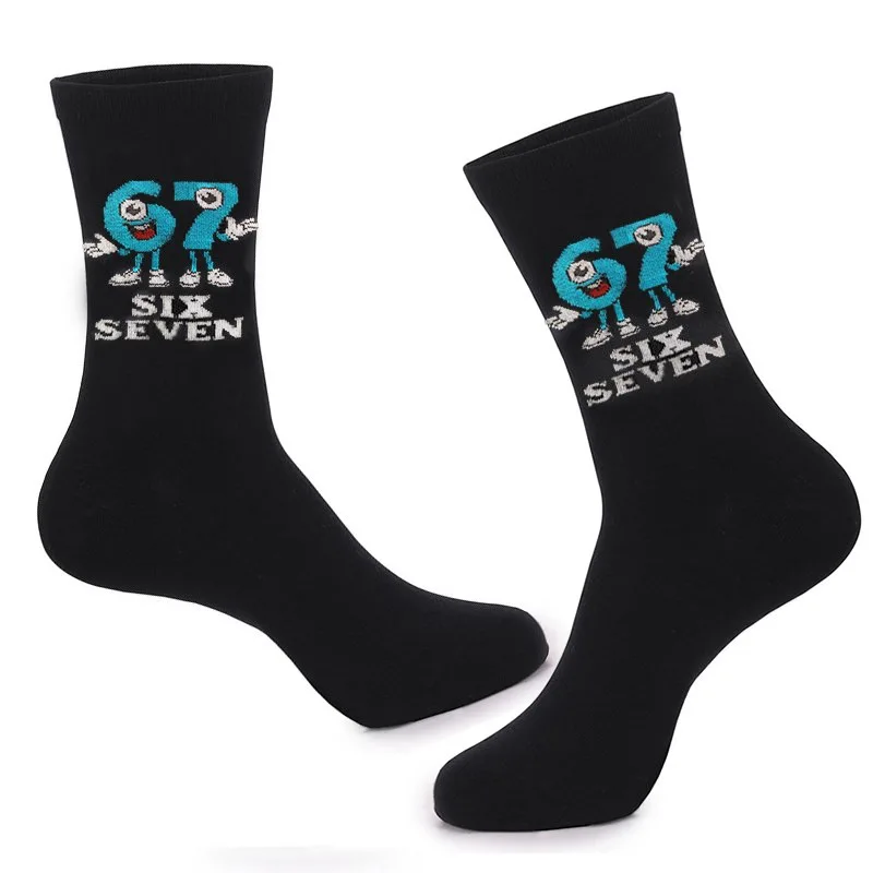 Cross Border New Arrival 67 Cartoon Number Socks Funny Letter Mens Mid Calf Socks