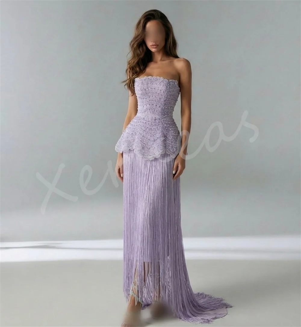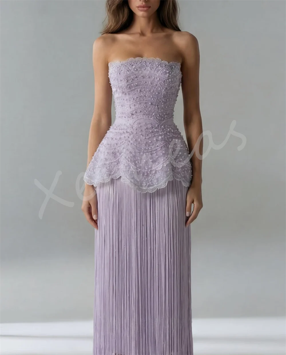 Customized Exquisite Luxury Evening Dress Glitter Beading Strapless Straight Midi Dresses Grace Party Gown High Quality