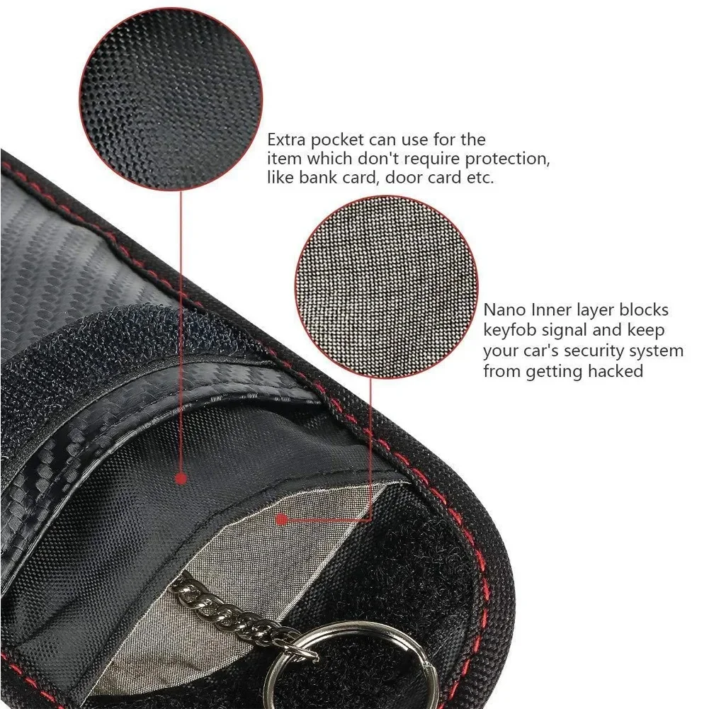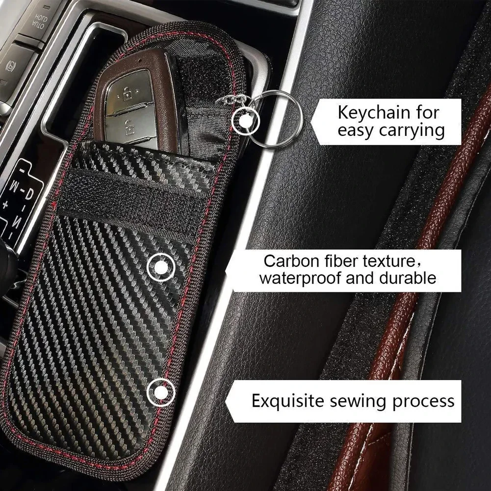 Faraday Bag for Key Fob Cage Protector Car RFID Signal Blocking Key Fob Protector Anti-Theft Pouch Double-Layers of Carbon Fiber