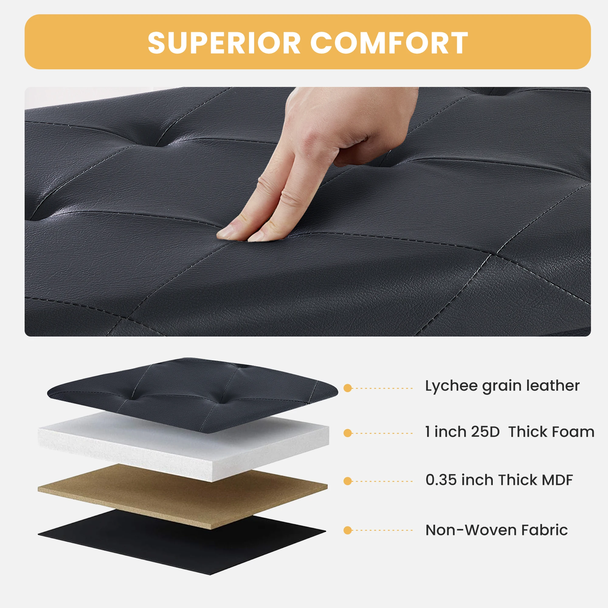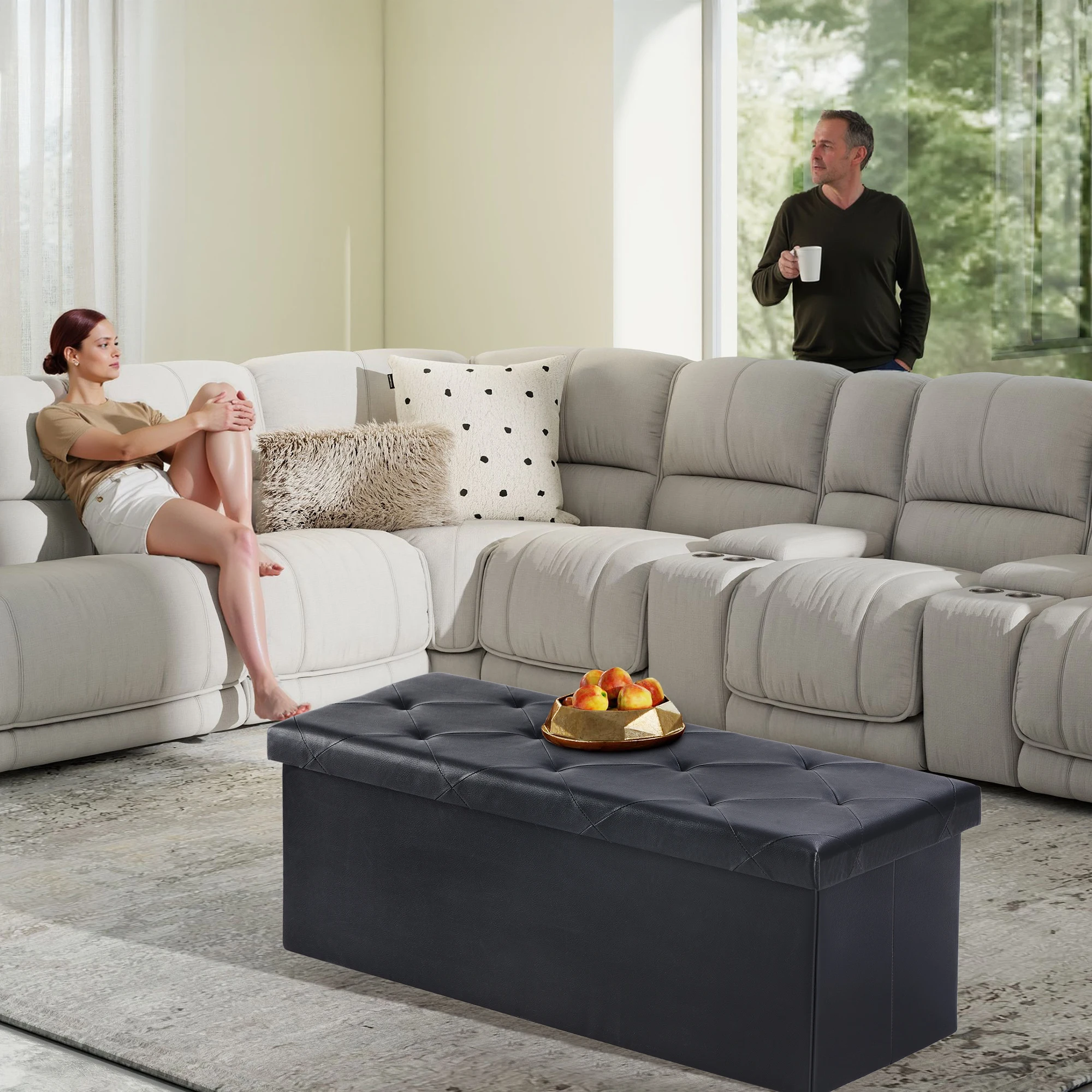 JHK 43 Inches Leather Folding Ottoman Storage Footstool Toy Box Bedroom Bench Load 660 lbs Foot Rest Stool For Living Room