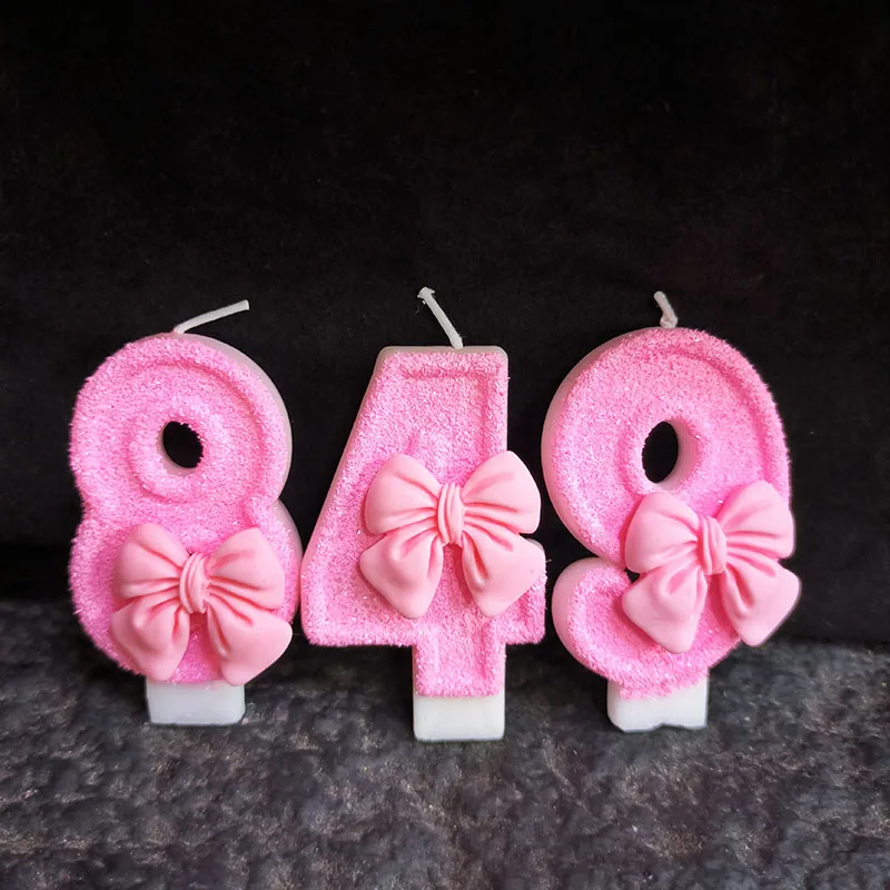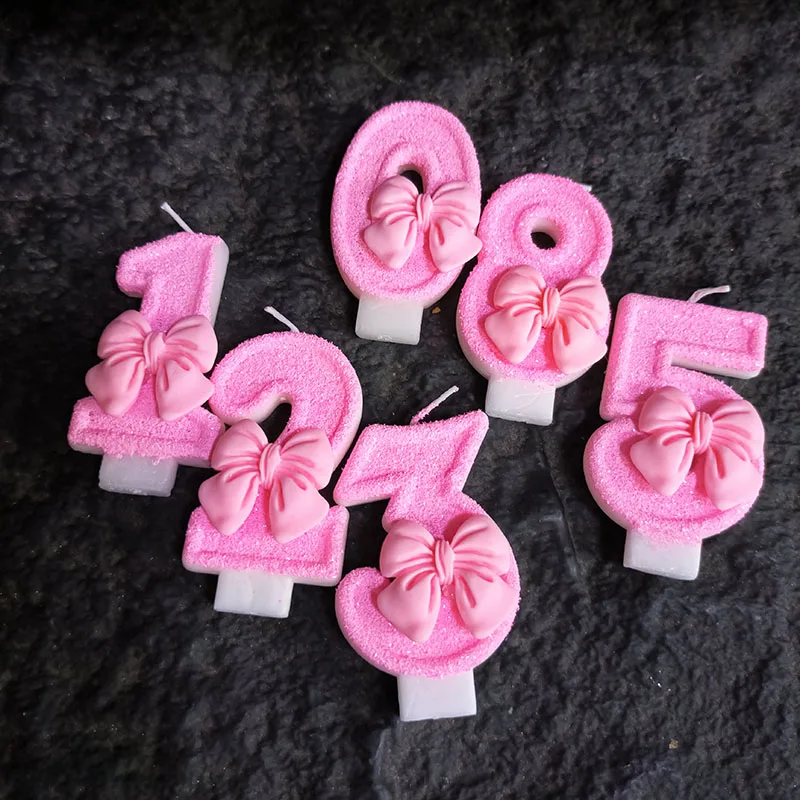 Creative Digital 0-9 Number Birthday Cake Candles New Girls Pink Bow Household Home Decor Ornaments Cakes Decorations Candle