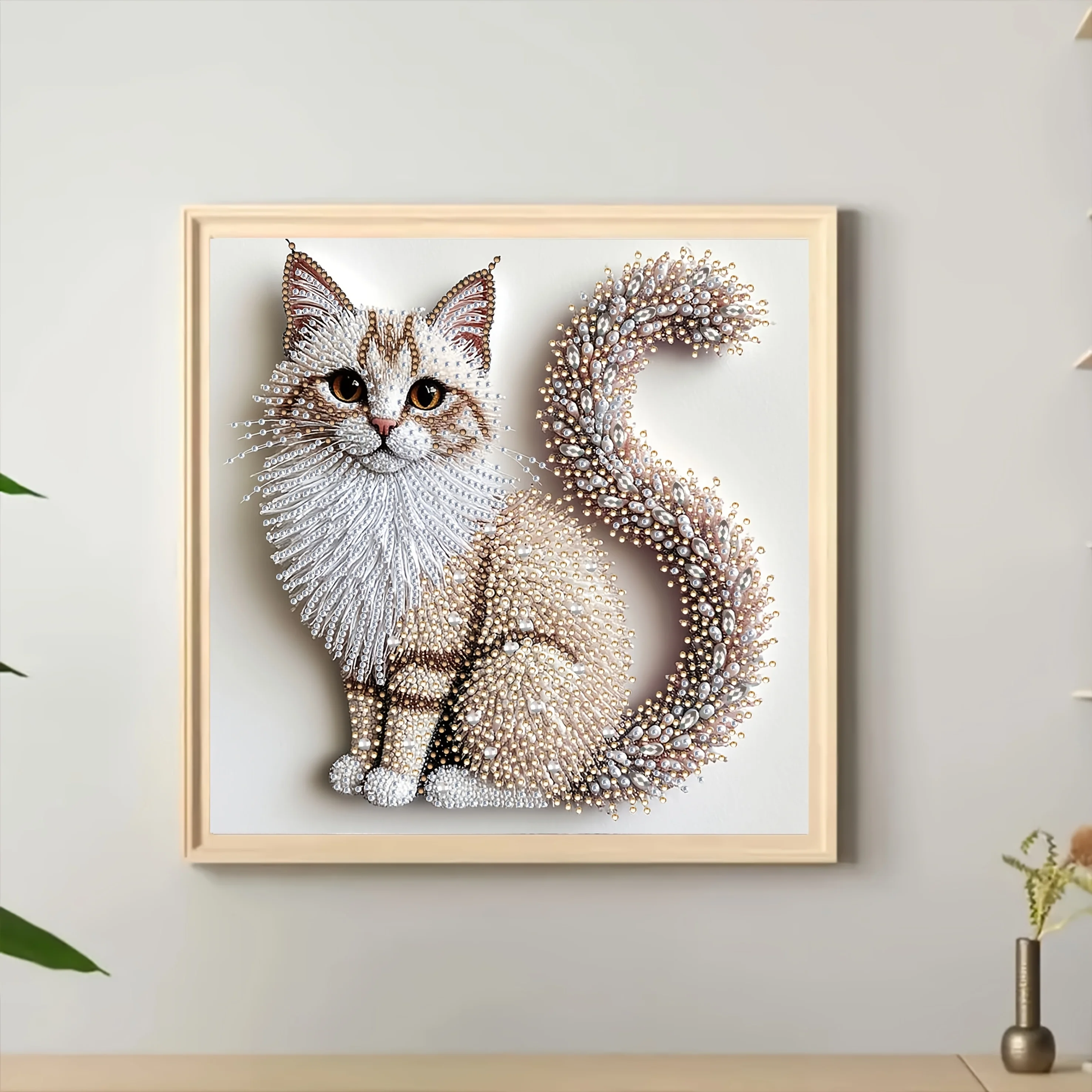 5D Diamond Painting Kit | Fluffy Kitten Theme, Handcrafted, 2D Flat Printing, Irregular Diamonds, Canvas Material, Acrylic Paint
