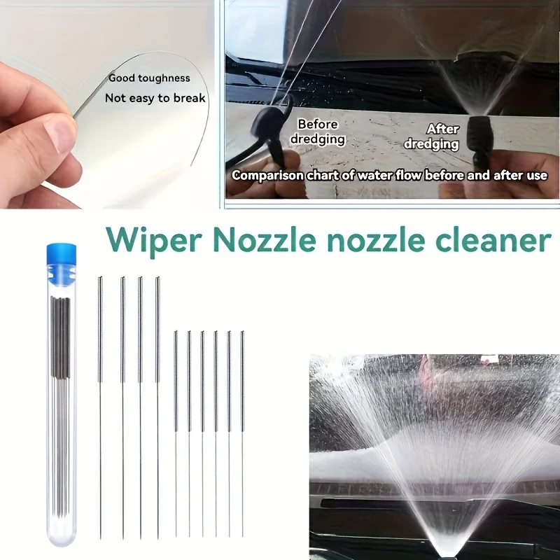 10-Piece Stainless Steel Cleaning Nozzle Kit - Window Wiper, 3D Printer Nozzle, Gas Stove, Shower Needle Unclogging Brush