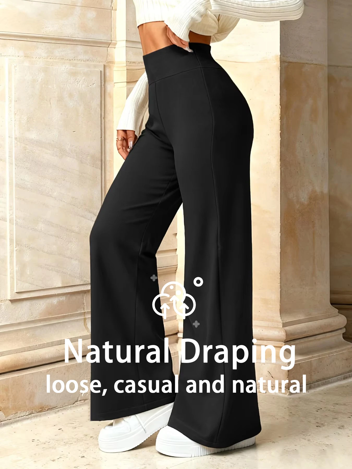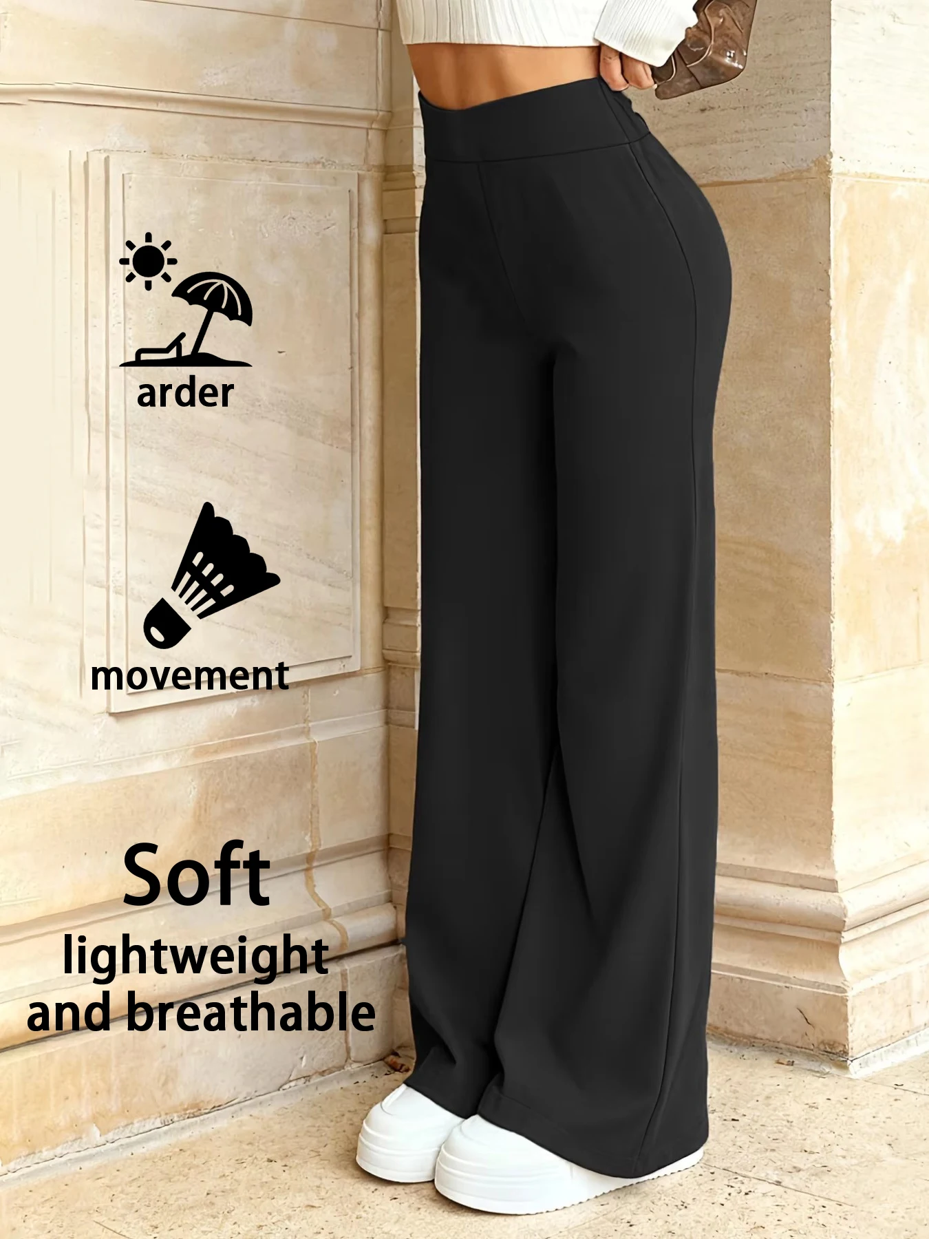 Korean Fashion High-Waisted Full-Length Wide-Leg Straight-Leg Casual Pants Women's Daily Office Commute Wear Ladies' Pants