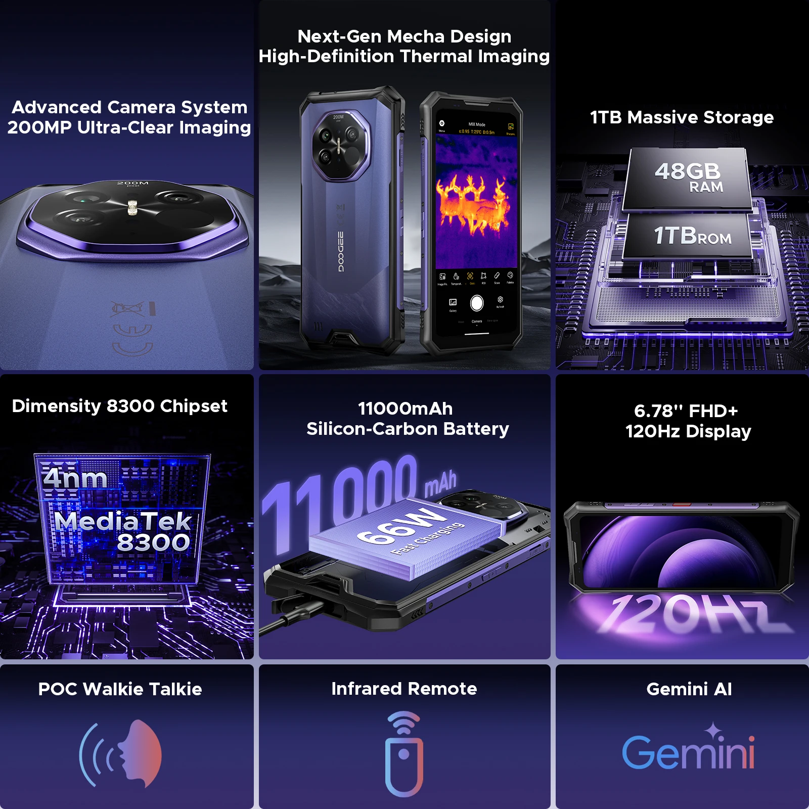 World Premiere DOOGEE S300 Plus Thermal Rugged Phone 5G Thermal Imaging 12GB 1TB 6.78'' Screen Android 16 Cell Phone Support POC