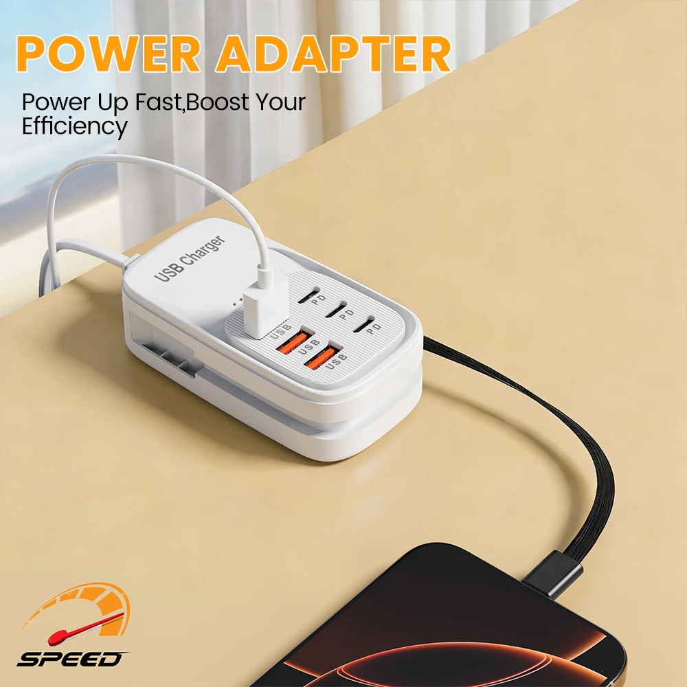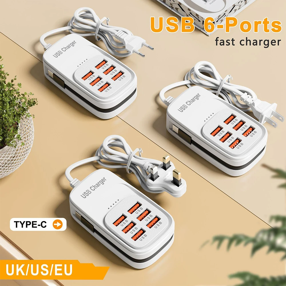 Fast USB Charger 6 in 1 Power Strip Desktop Charging Station Fast Charging Cord EU/UK/US Plug USB HUB Adapter Socket 3PD 3USB
