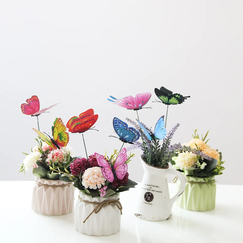 50-10Pcs Simulation Butterfly Colorful Butterfly Stakes Home Garden Yard Plant Flower Pot Multi-purpose Butterfly Decoration